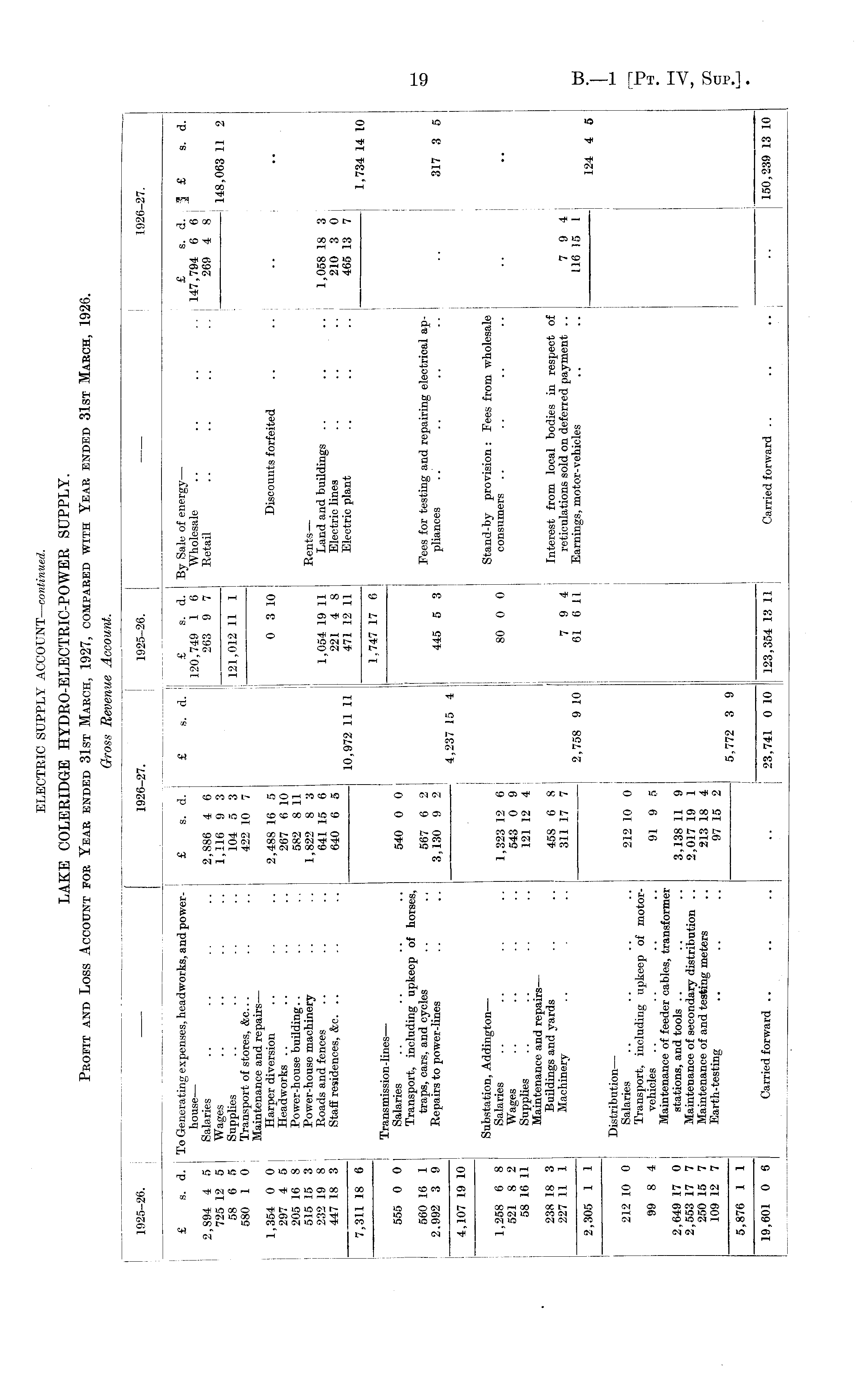 ELECTRIC SUPPLY ACCOUNT— continued. LAKE COLERIDGE HYDRO-ELECTRIC-POWER SUPPLY. Profit and Loss Account for Year ended 31st March, 1927, compared with Year ended 31st March, 1926.