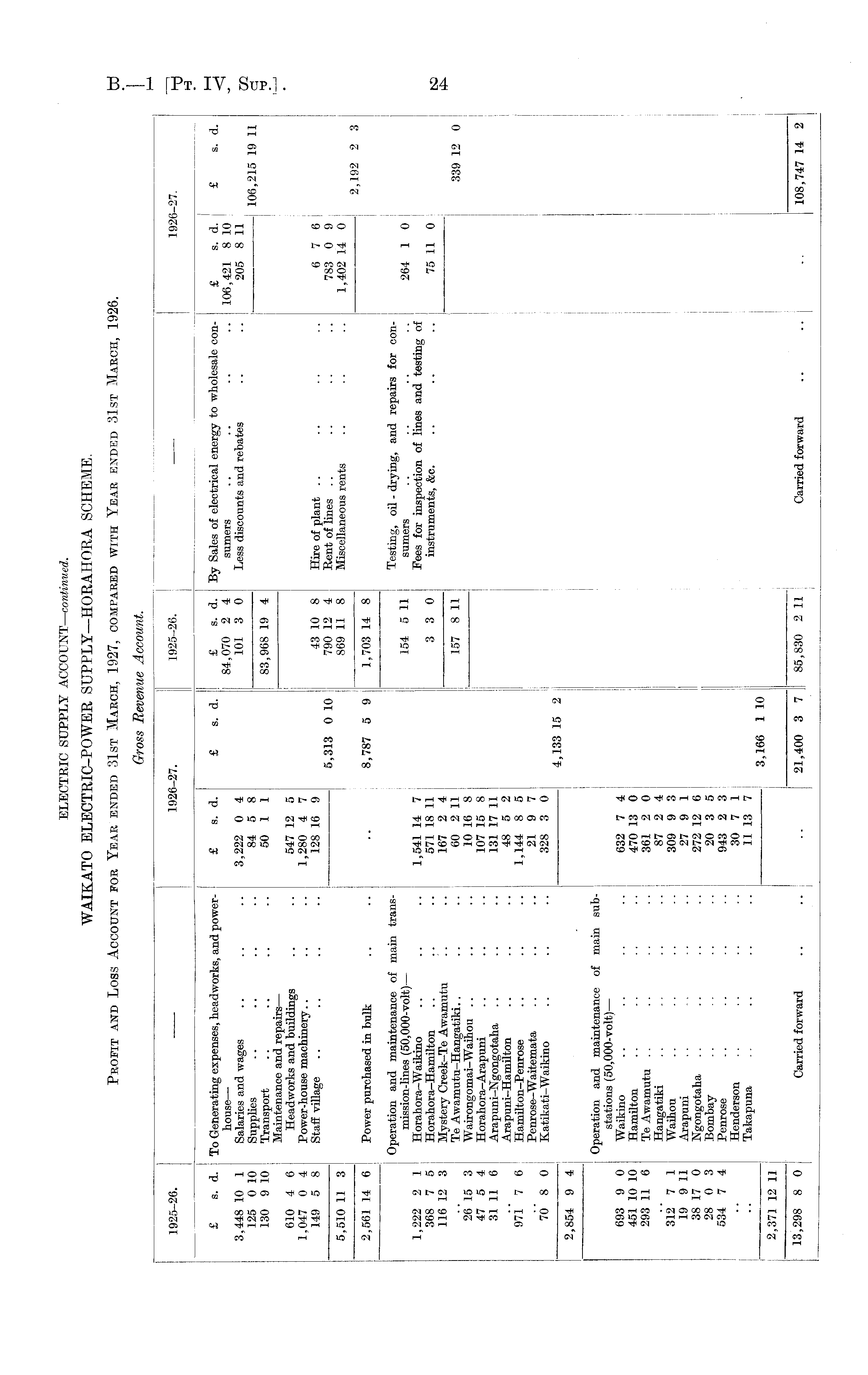 ELECTRIC SUPPLY ACCOUNT—continued. WAIKATO ELECTRIC-POWER SUPPLY—HORAHORA SCHEME. Profit and Loss Account for Year ended 31st March, 1927, compared with Year ended 31st March, 1926.