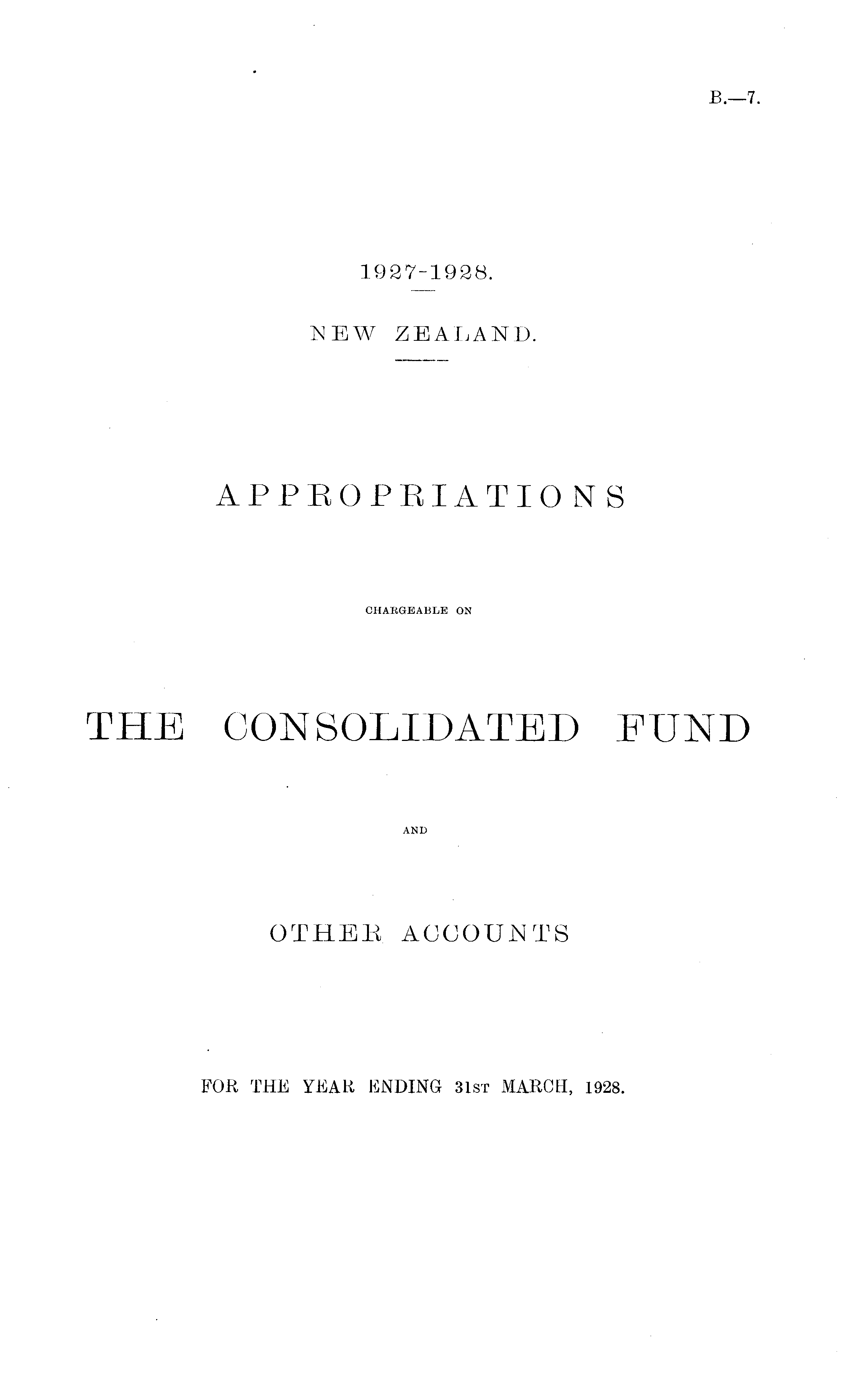 APPROPRIATIONS CHARGEABLE ON THE CONSOLIDATED FUND AND OTHER ACCOUNTS FOR THE YEAR ENDING 31st MARCH, 1928.