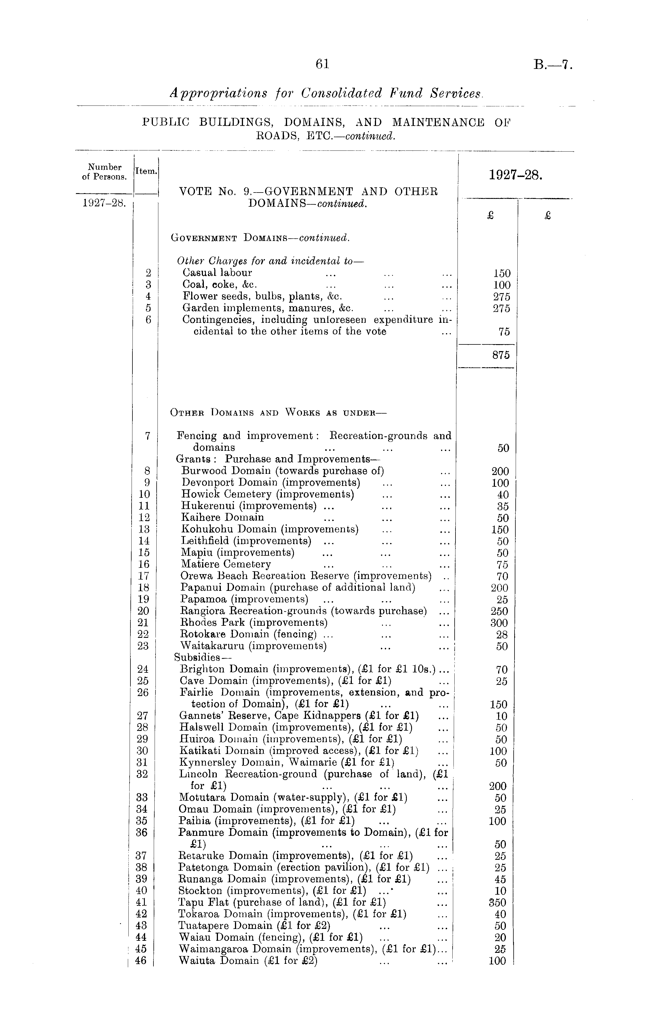 PUBLIC BUILDINGS, DOMAINS, AND MAINTENANCE OF ROADS, ETC.—continued.