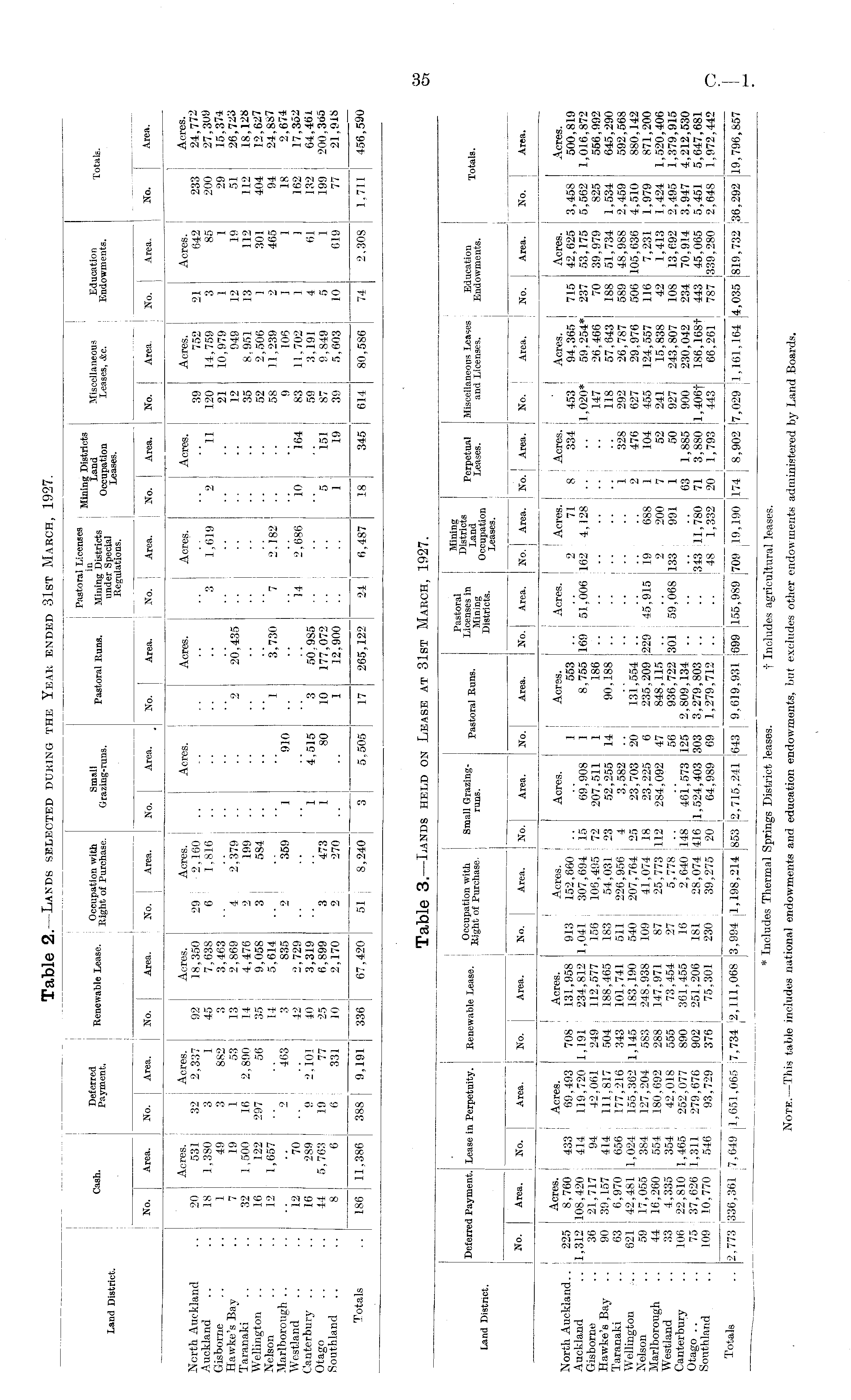 Table 3.-Lands held on Lease at 31st March, 1927.
