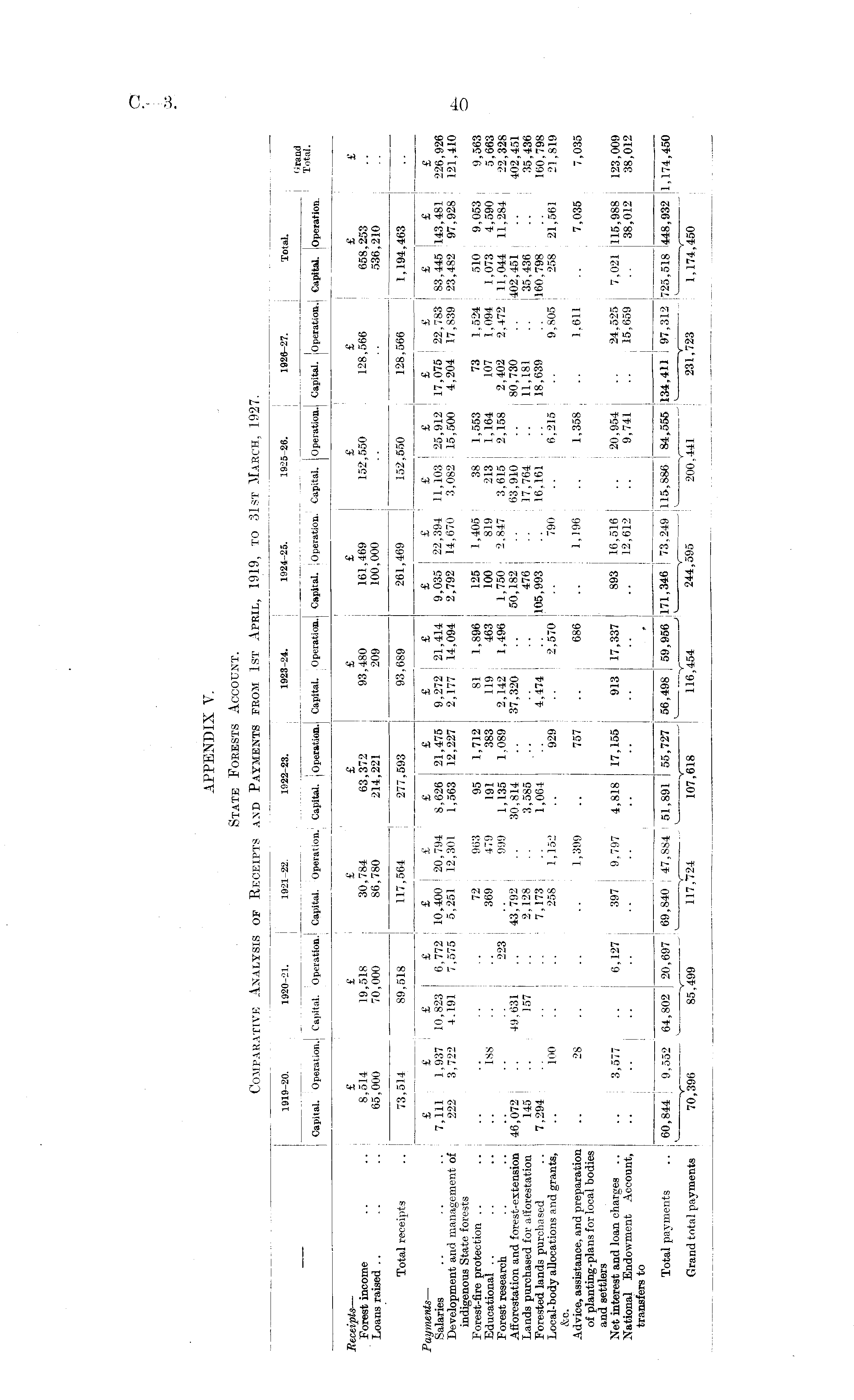 APPENDIX V. State Forests Account. Comparative Analysis of Receipts and Payment from 1st April, 1919, to 31st March, 1927.