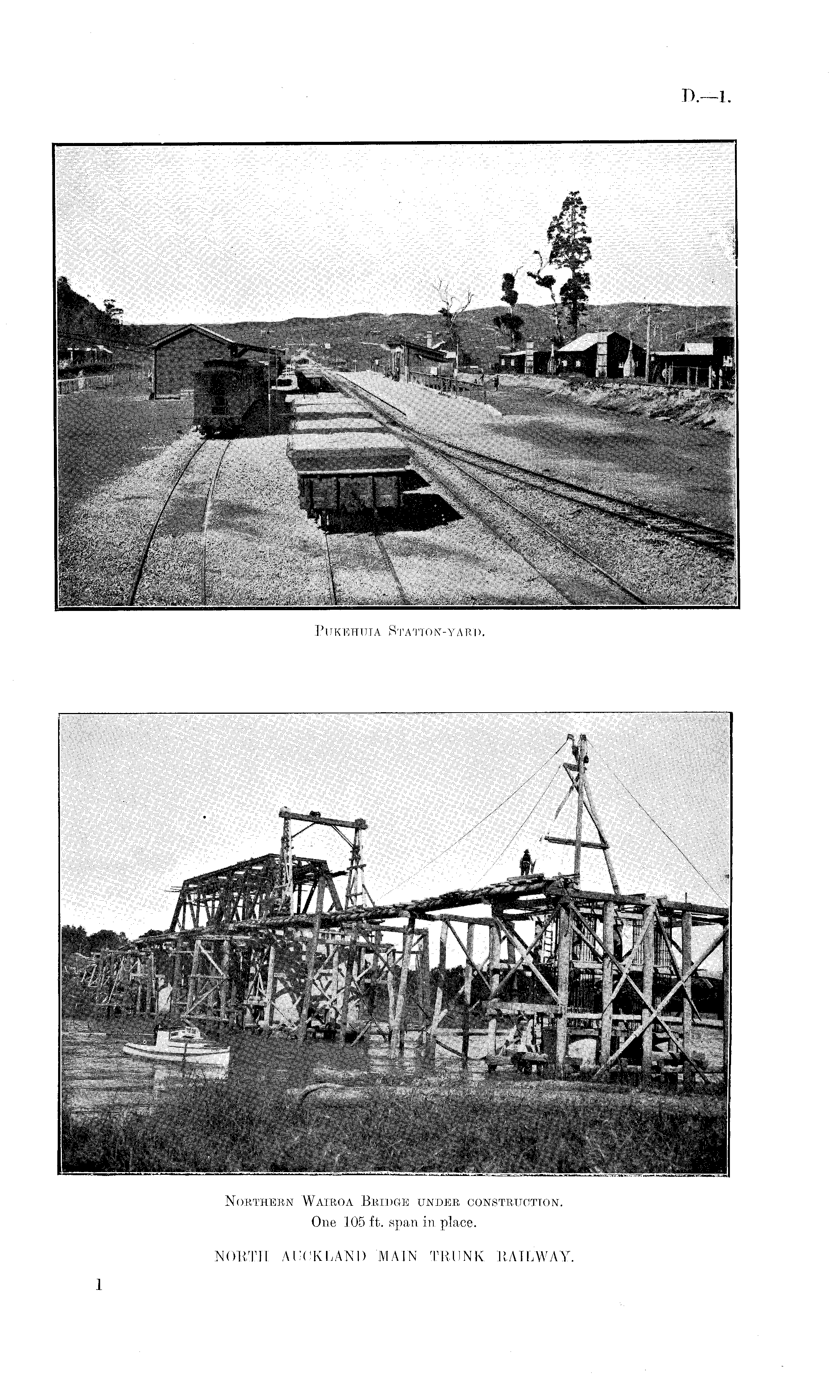 Northern Wairoa Bridge under construction. One 105ft. span in place. NORTH AUCKLAND MAIN TRUNK RAILWAY.