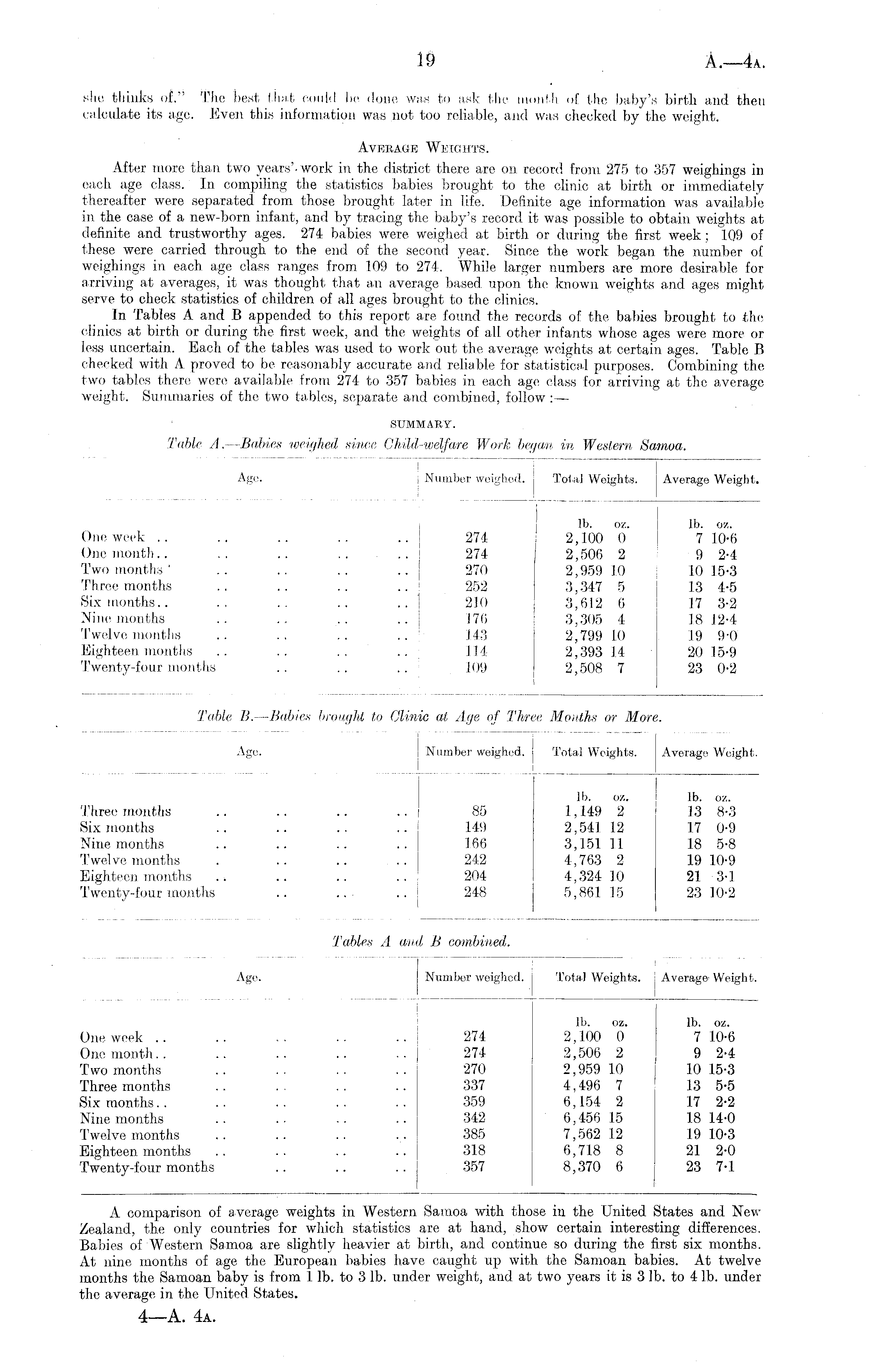 SUMMARY. Table A. —Babies weighed since Child-welfare Work began in Western Samoa.