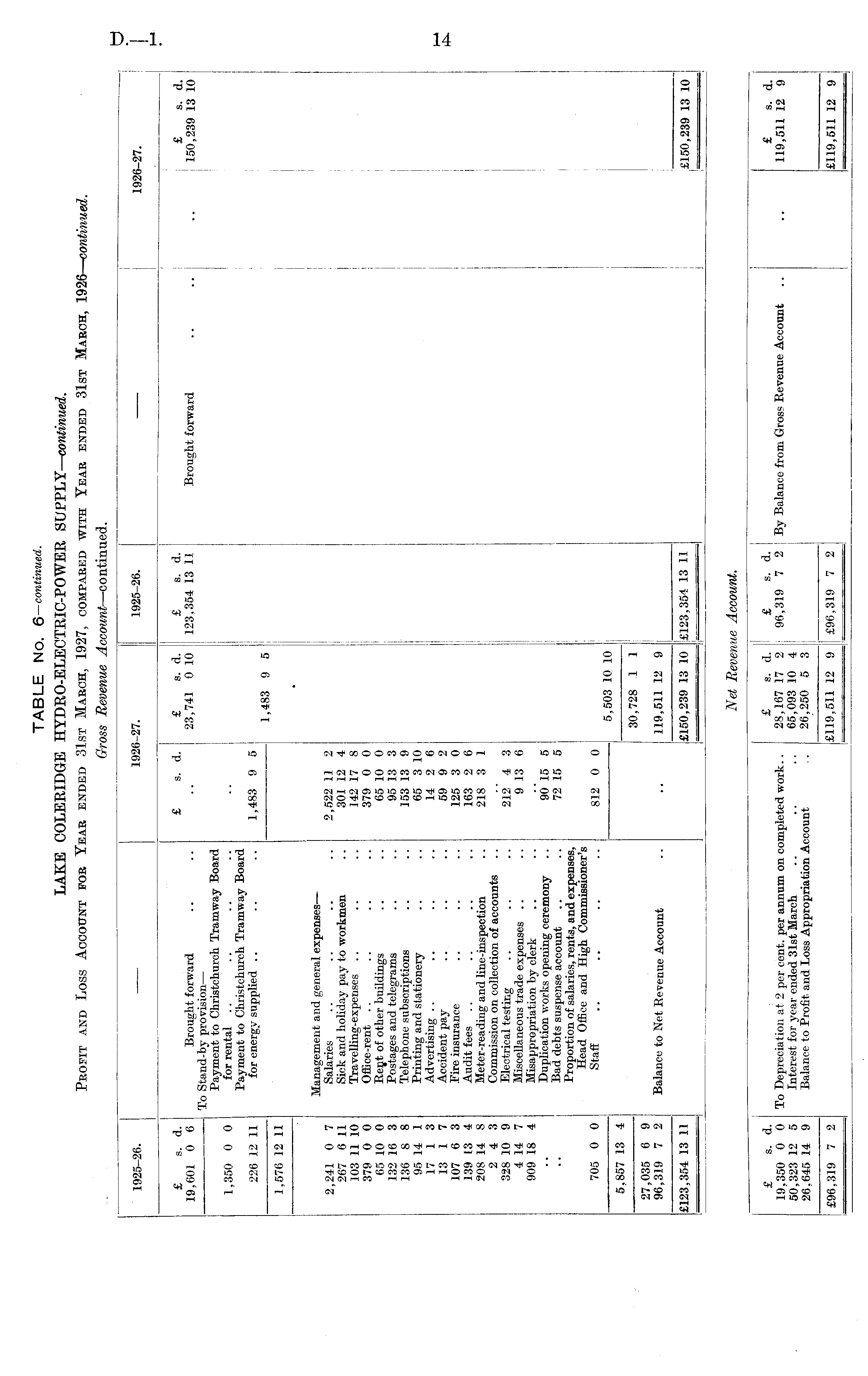 TABLE No. 6—continued. LAKE COLERIDGE HYDRO-ELECTRIC-POWER SUPPLY—continued,. Profit and Loss Account for Year ended 31st March, 1927, compared with Year ended 31st March, 1926—continued. Gross Revenue Account—continued.