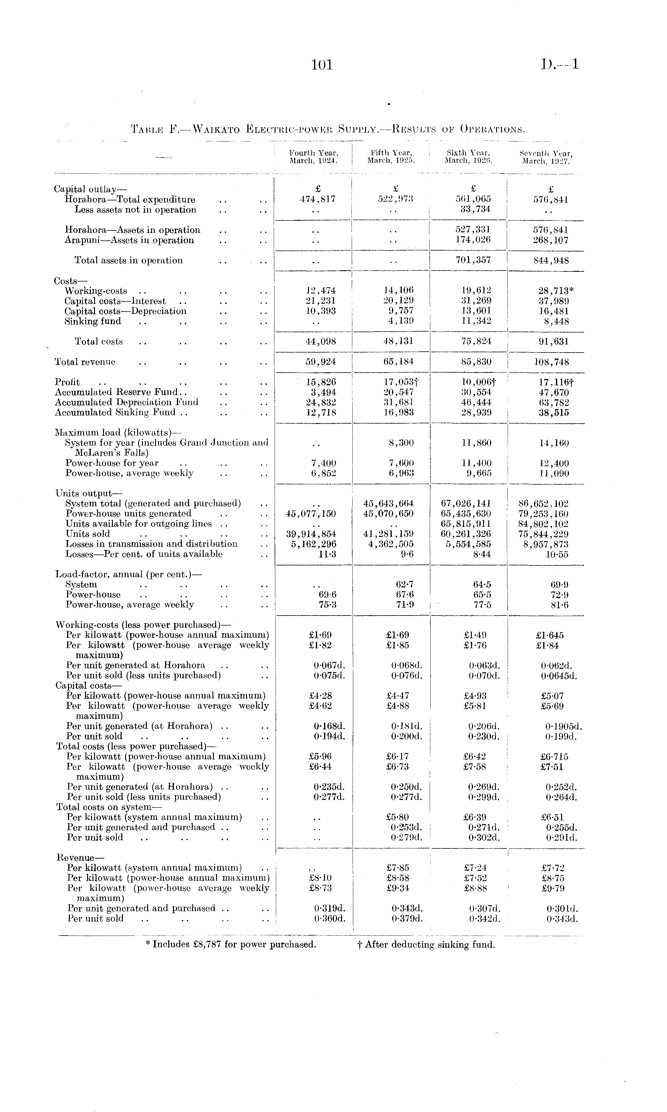 Table F. —Waikato Electric-power Supply.—Results of Operations.