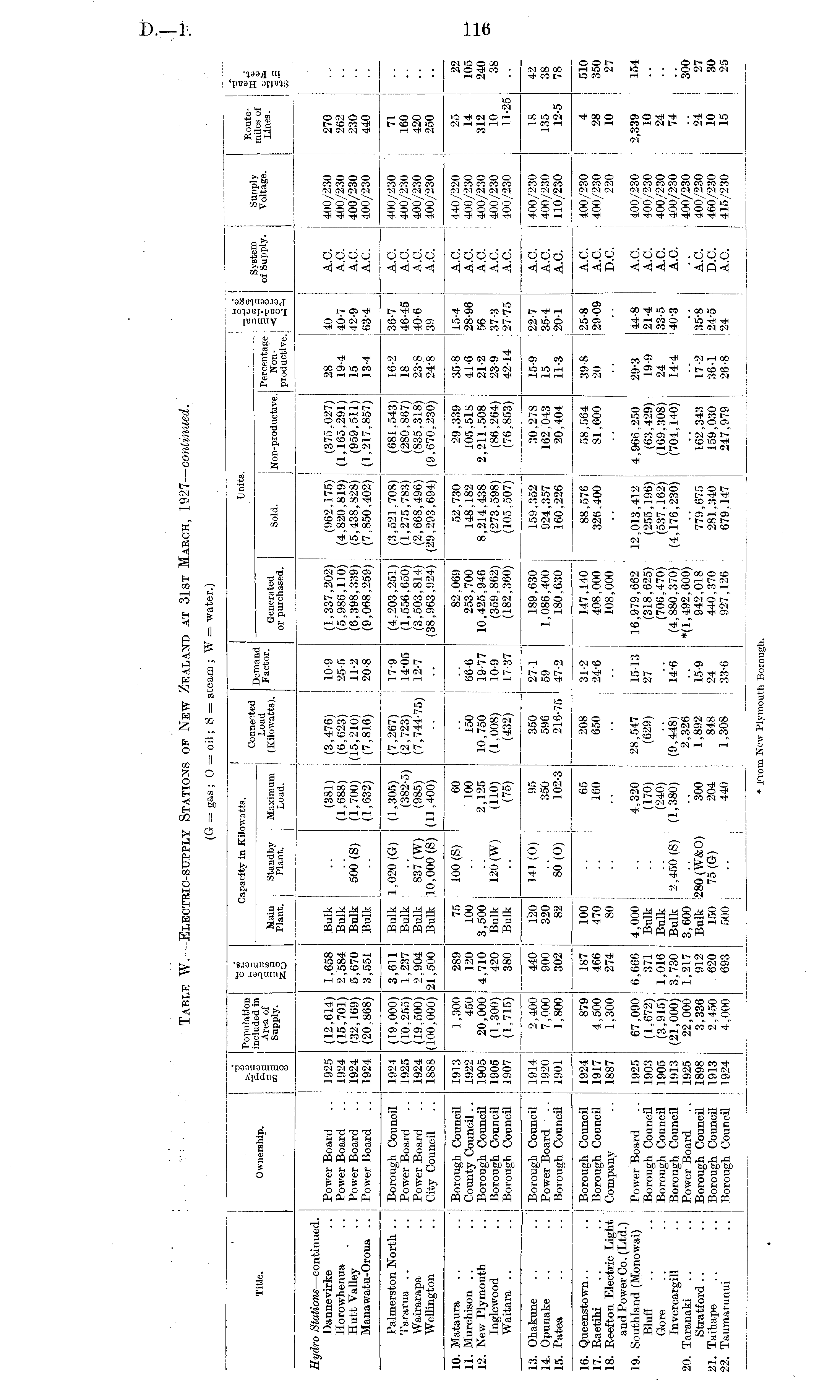 Table W.—Electric-supply Stations of New Zealand at 31st March, 1927—continued.