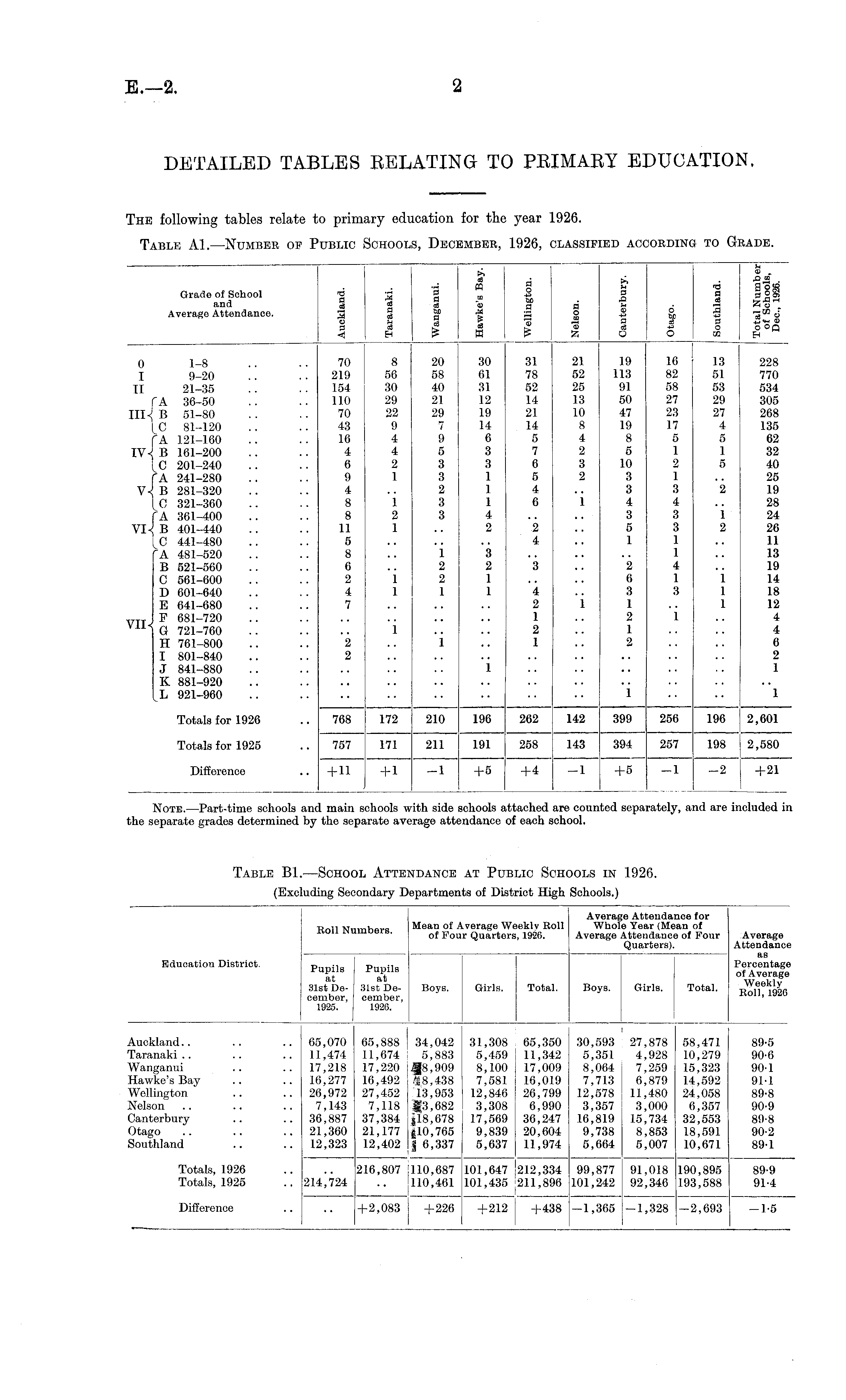 The following tables relate to primary education for the year 1926. Table A1. —Number of Public Schools, December, 1926, classified according to Grade.