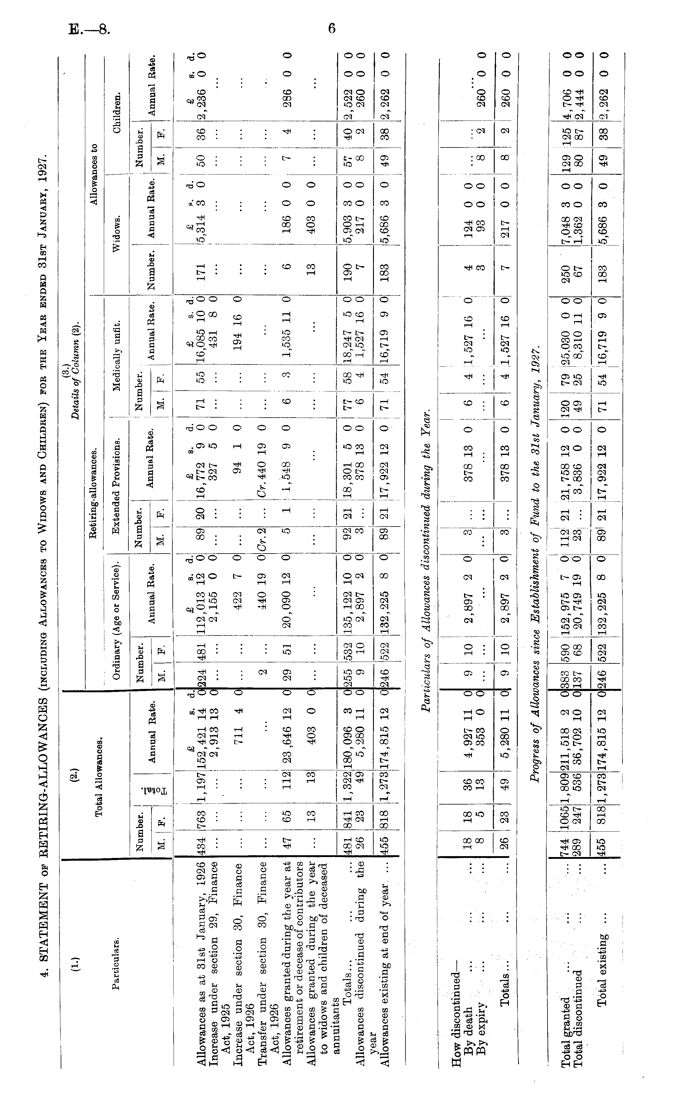 4. STATEMENT of RETIRING-ALLOWANCES (including Allowances to Widows and Children) for the Year ended 31st January, 1927.