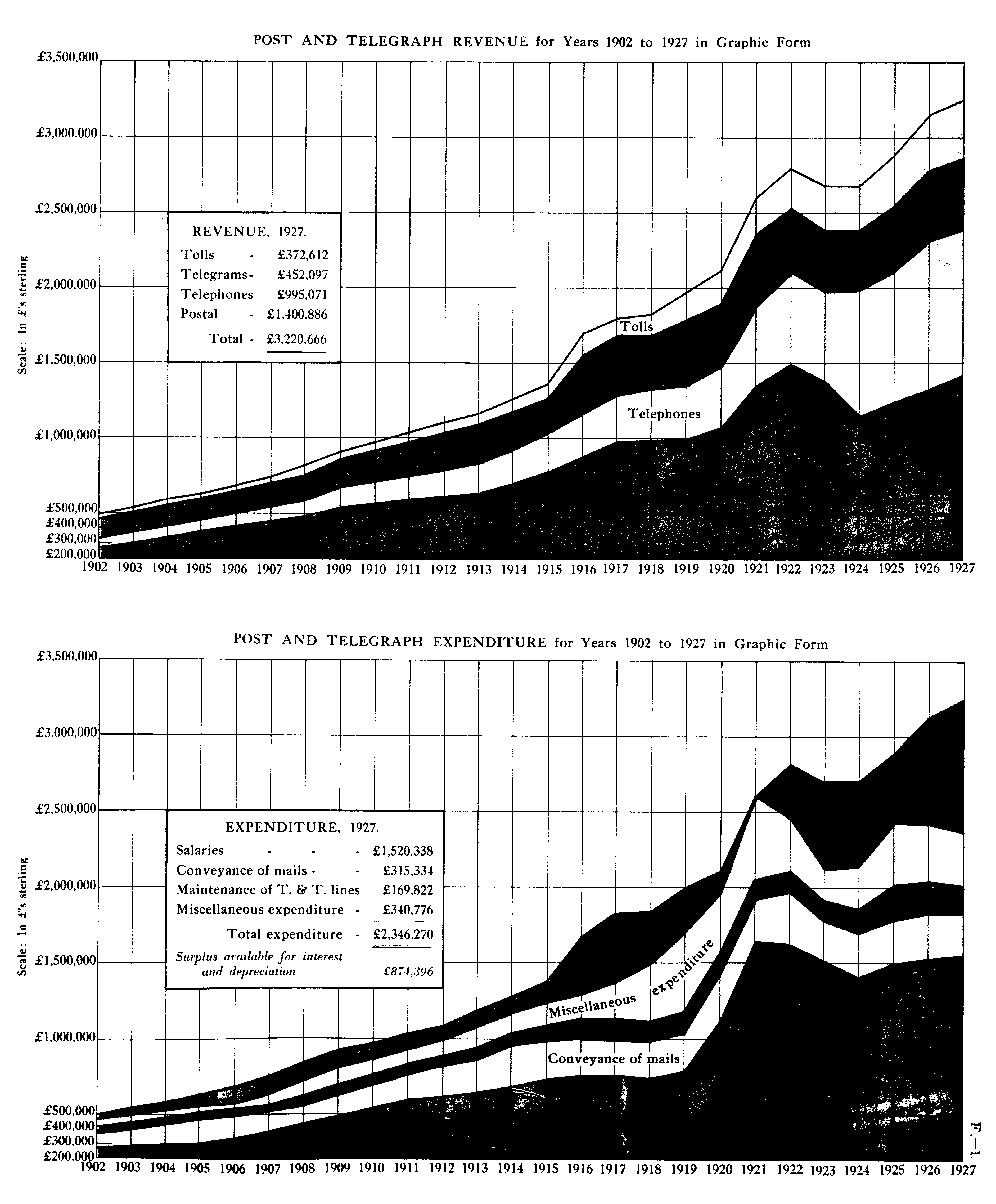 POST AND TELEGRAPH EXPENDITURE for Years 1902 to 1927 in Graphic Form