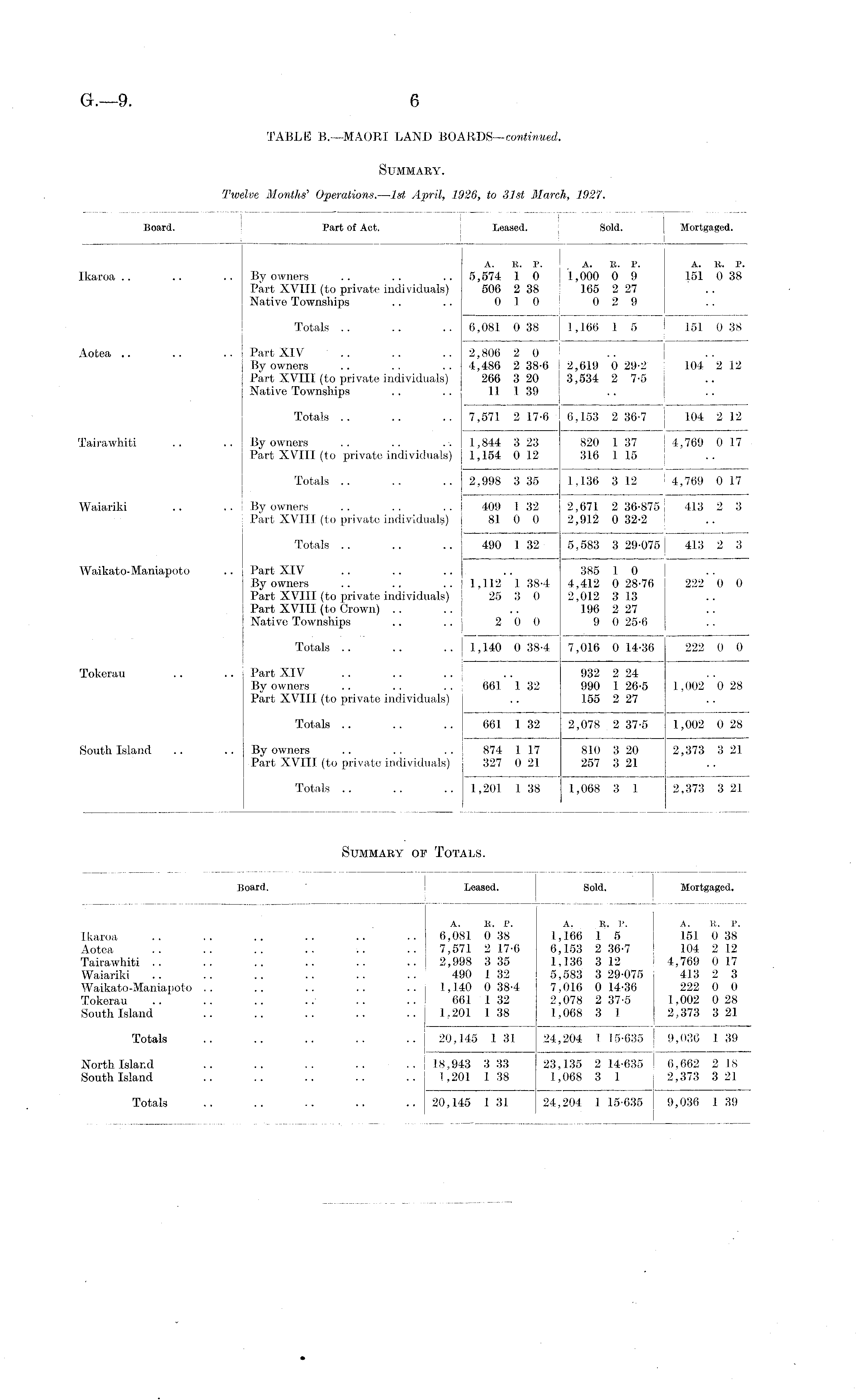 TABLE B.—MAORI LAND BOARDS —continued. Summary. Twelve Months' Operations.—1st April, 1926, to 31st March, 1927.