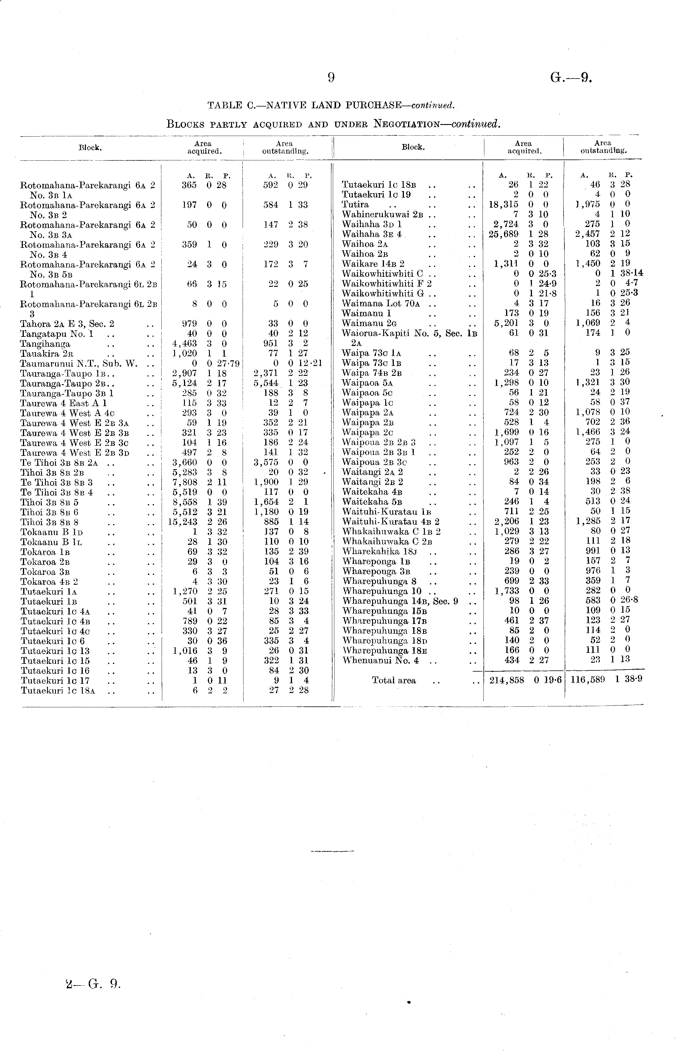 TABLE C.—NATIVE LAND PURCHASE—continued. Blocks partly acquired and under Negotiation—continued.