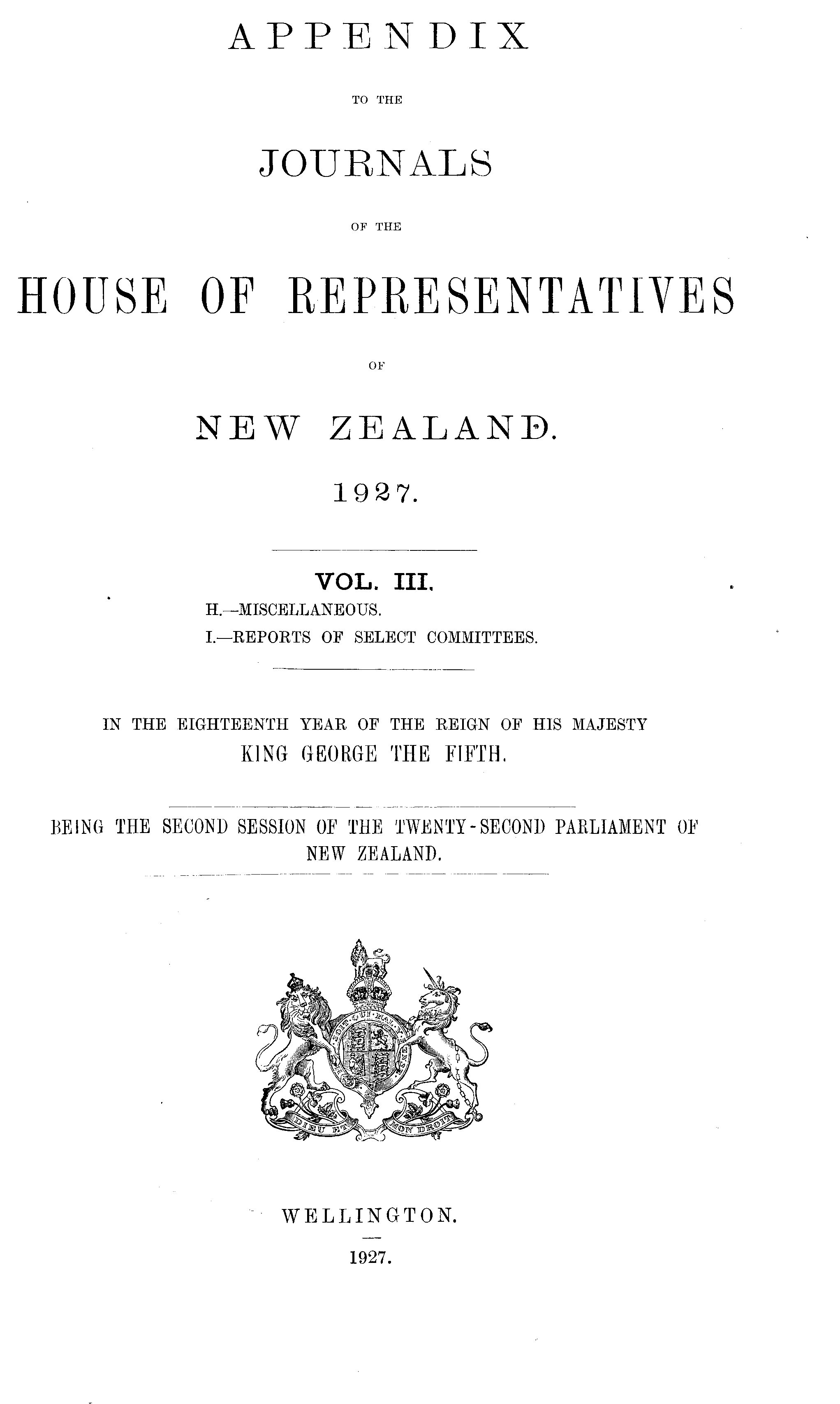 APPENDIX TO THE JOURNALS OF THE HOUSE OF REPRESENTATIVES OF NEW ZEALAND. 1927.