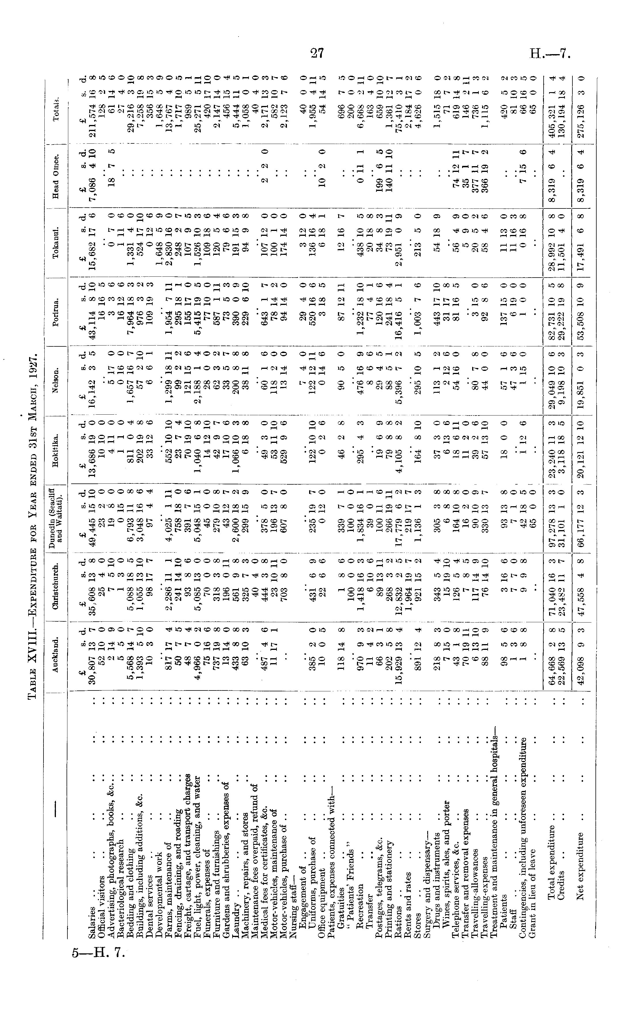 Table XVIII.— Expenditure for Year ended 31st March, 1927.