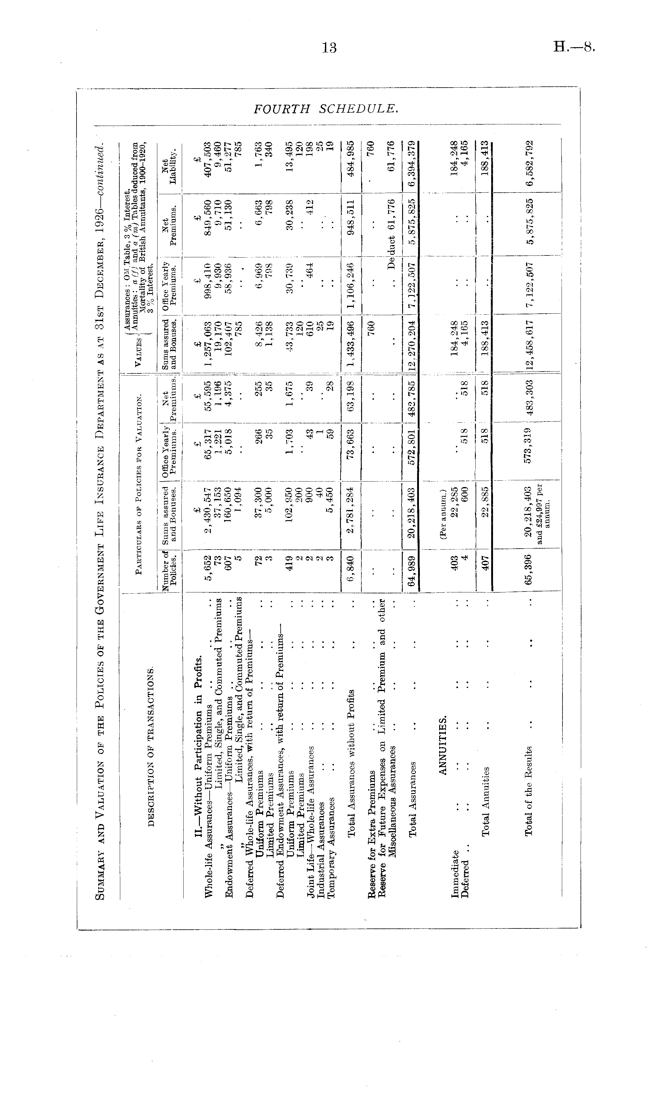Summary and Valuation of the Policies of the Government Life Insurance Department as at 31st December, 1926-continued.