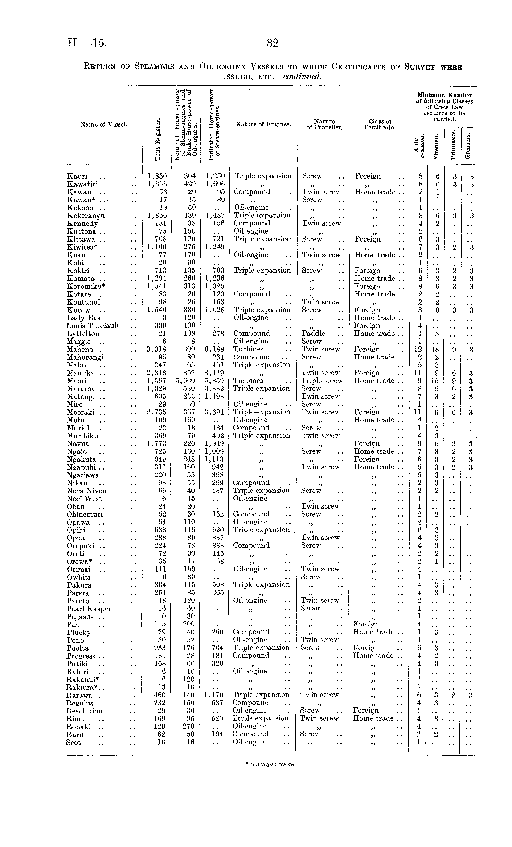 Return of Steamers and Oil-engine Vessels to which Certificates of Survey were issued, etc. —continued.