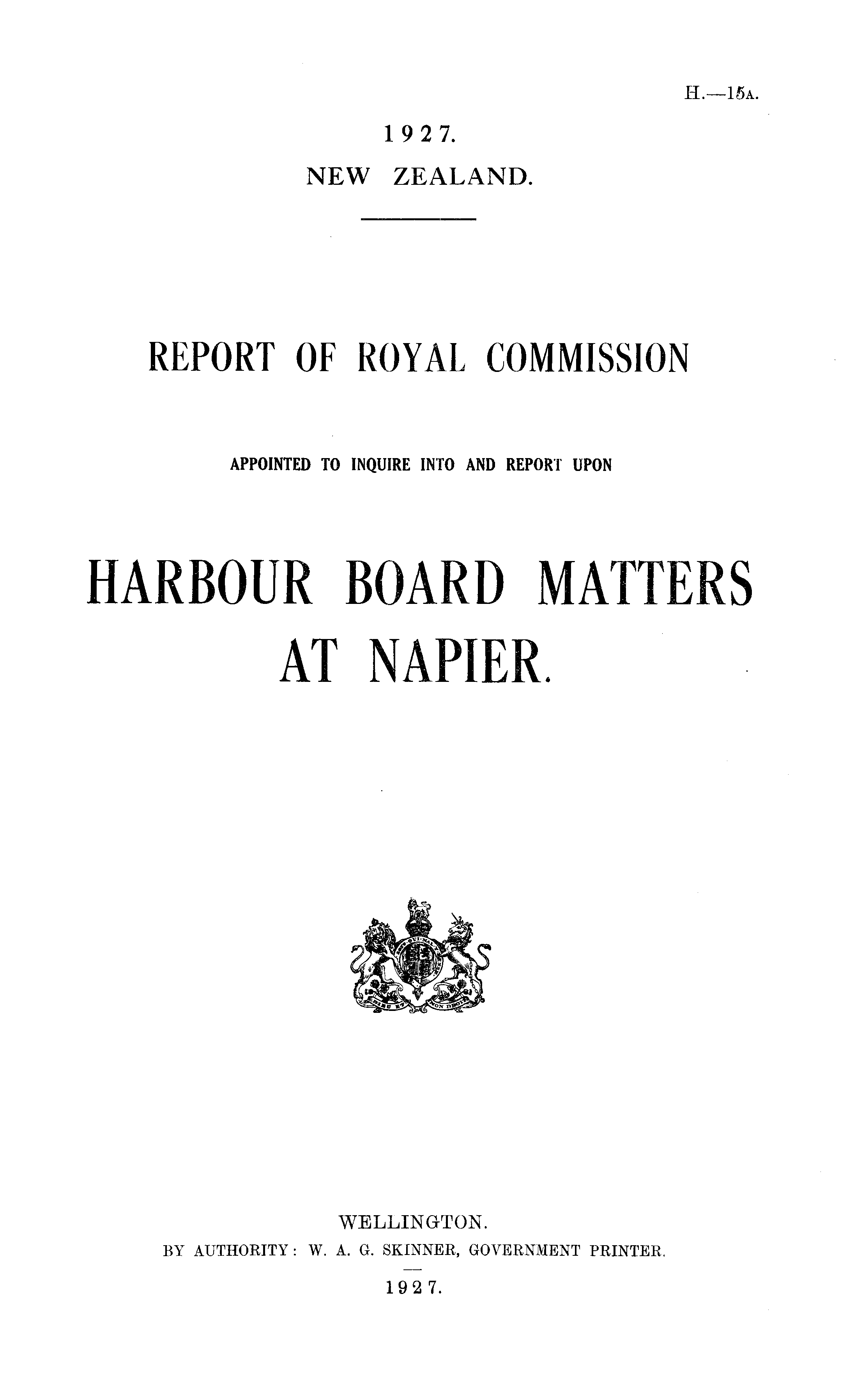 REPORT OF ROYAL COMMISSION APPOINTED TO INQUIRE INTO AND REPORT UPON HARBOUR BOARD MATTERS AT NAPIER.