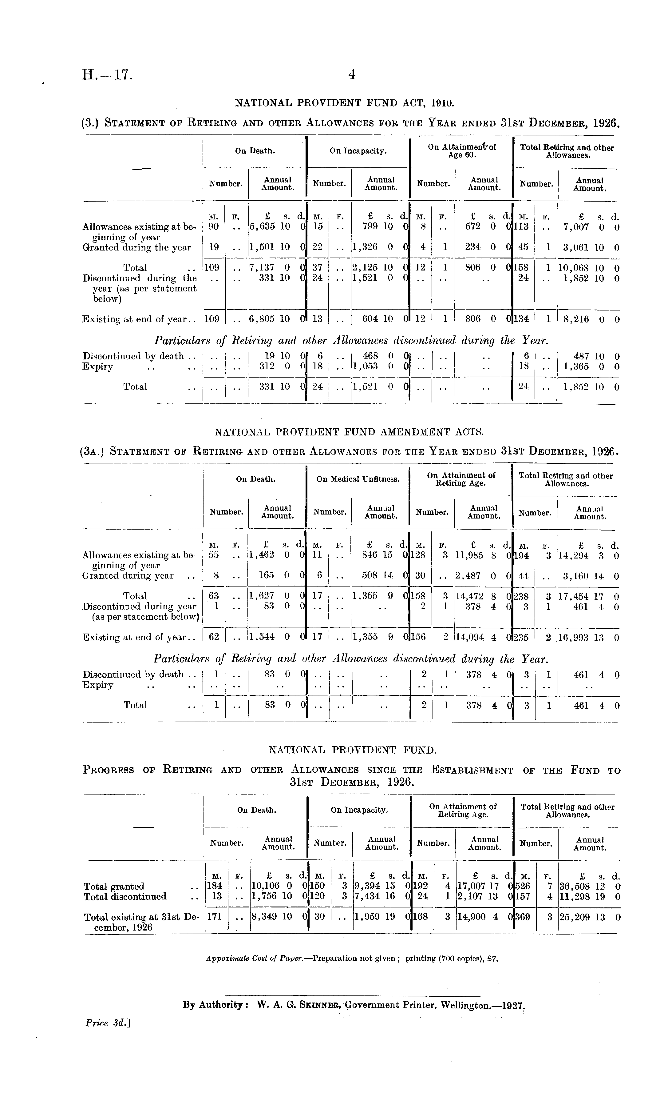 NATIONAL PROVIDENT FUND AMENDMENT ACTS. (3a.) Statement of Retiring and other Allowances for the Year ended 31st December, 1926.
