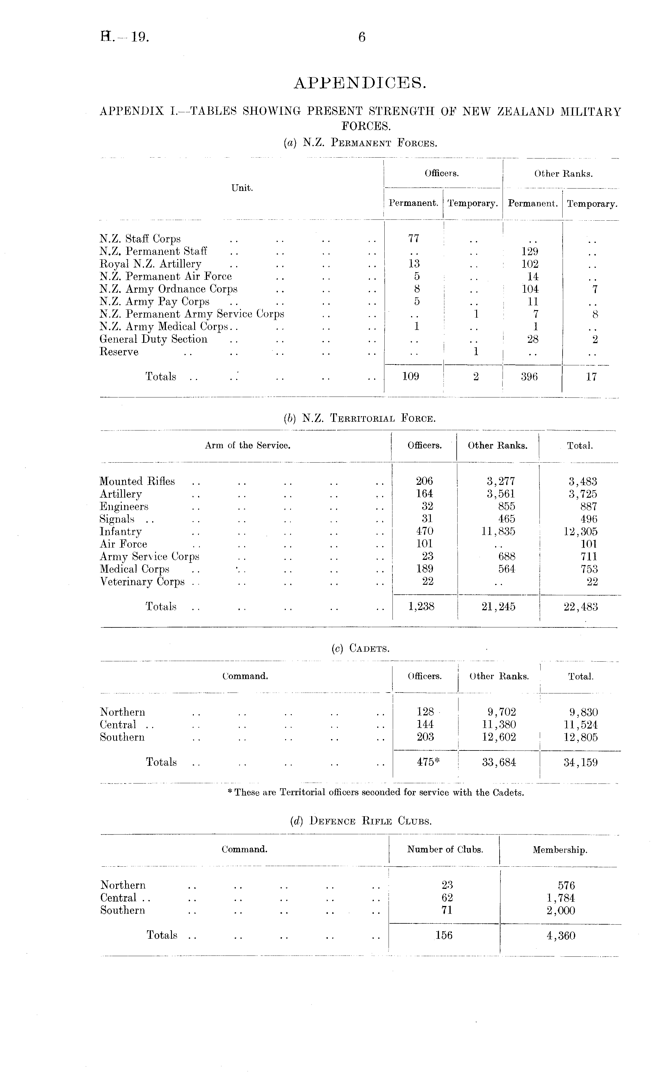 APPENDICES. APPENDIX I.—TABLES SHOWING PRESENT STRENGTH OF NEW ZEALAND MILITARY FORCES. (a) N.Z. Permanent Forces.