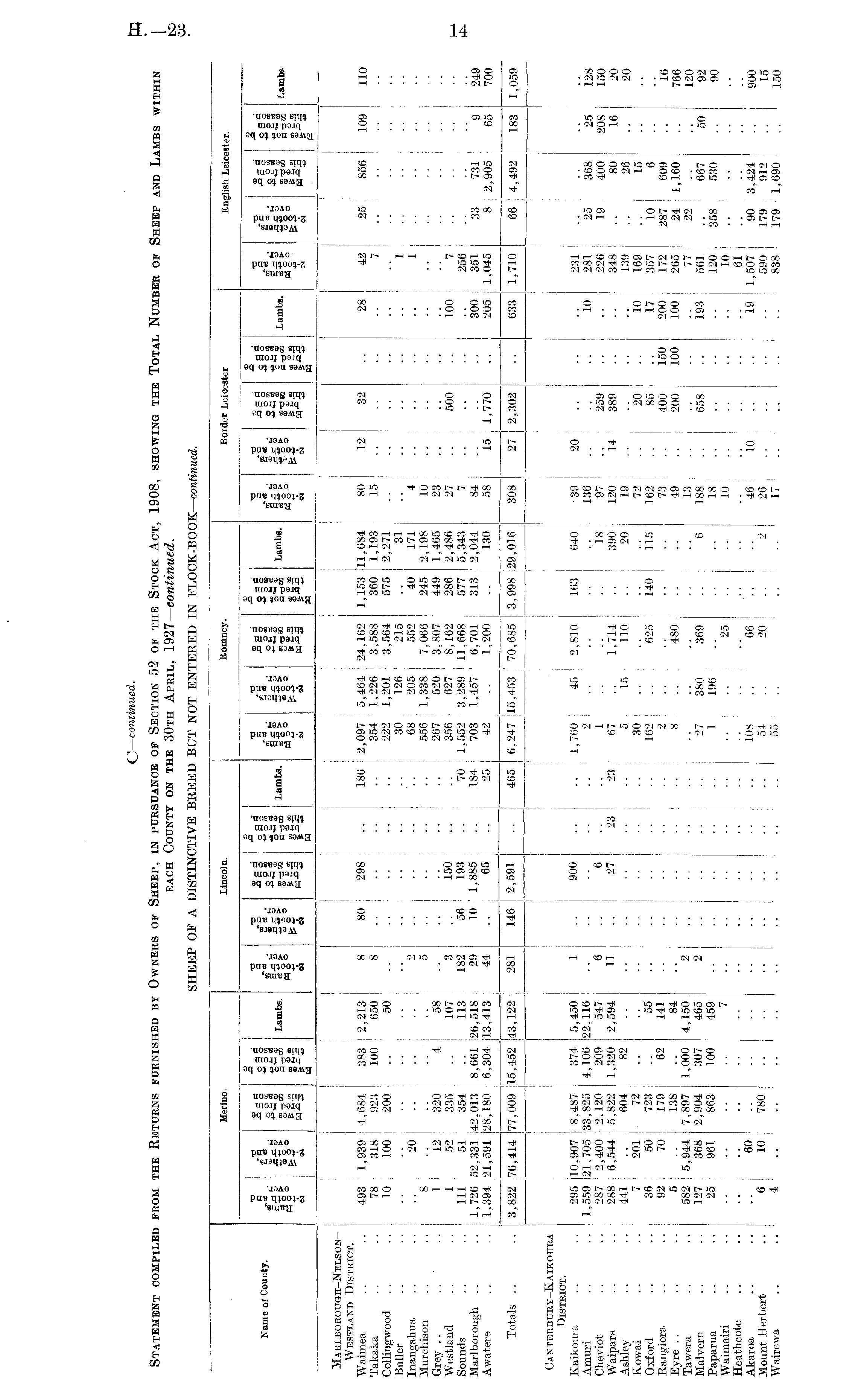 C—continued. Statement compiled from the Returns furnished by Owners of Sheep, in pursuance of Section 52 of the Stock Act, 1908, showing the Total Number of Sheep and Lambs within each County on the 30th April, 1927—continued. SHEEP OF A DISTINCTIVE BREED BUT NOT ENTERED IN FLOCK-BOOK— continued.