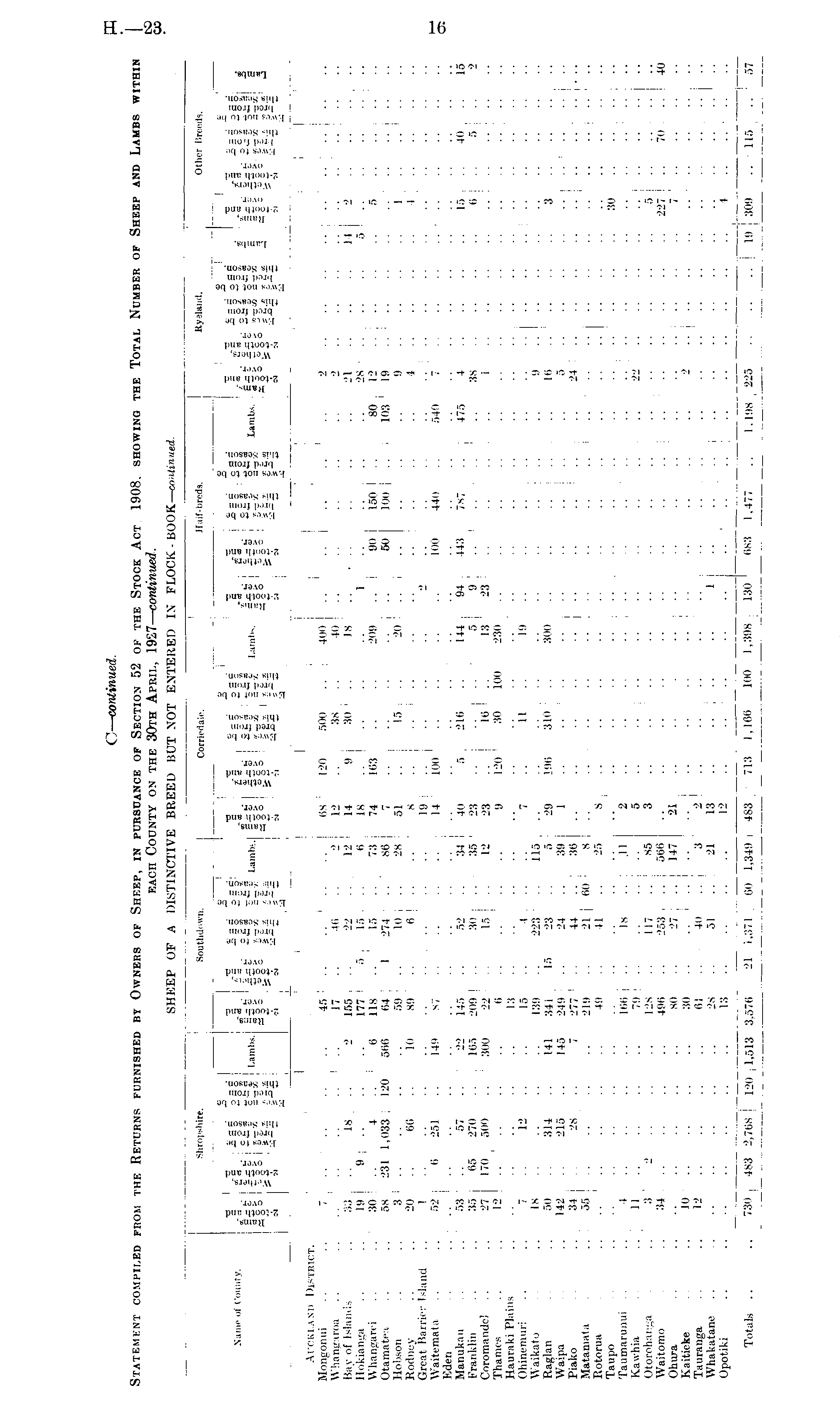 C— continued. Statement compiled from the Returns furnished by Owners of Sheep, in pursuance of Section 52 of the Stock Act, 1908, showing the Total Number of Sheep and Lambs within each County on the 30th April, 1927— continued. SHEEP OF A DISTINCTIVE BREED BUT NOT ENTERED IN FLOCK- BOOK— continued.