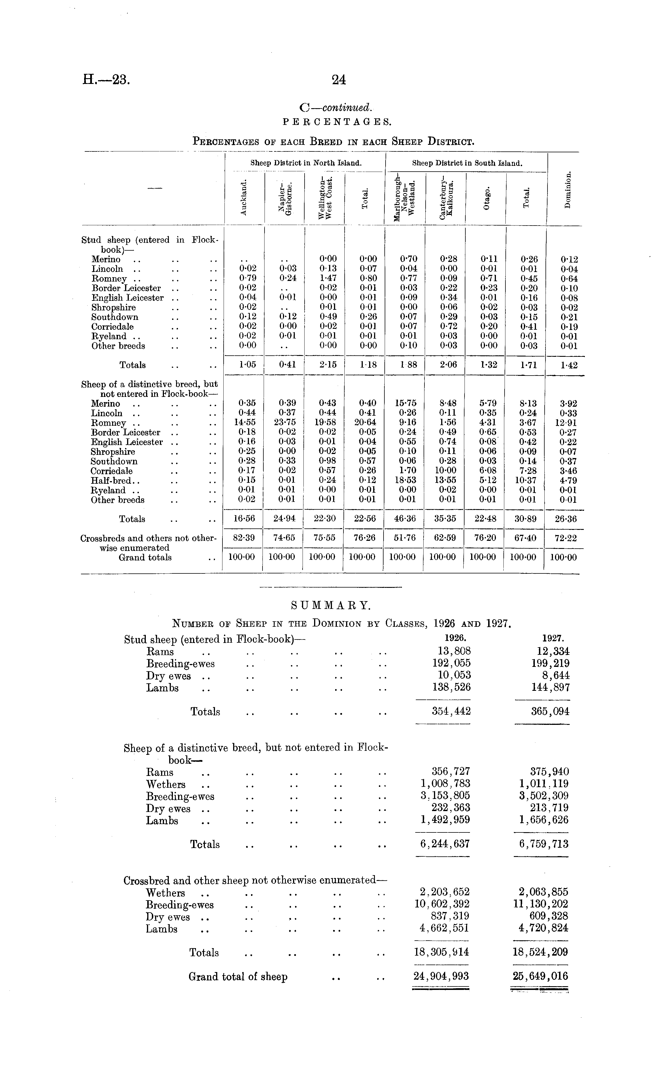 C —continued. PERCENTAGES. Percentages of each Breed in each Sheep District.