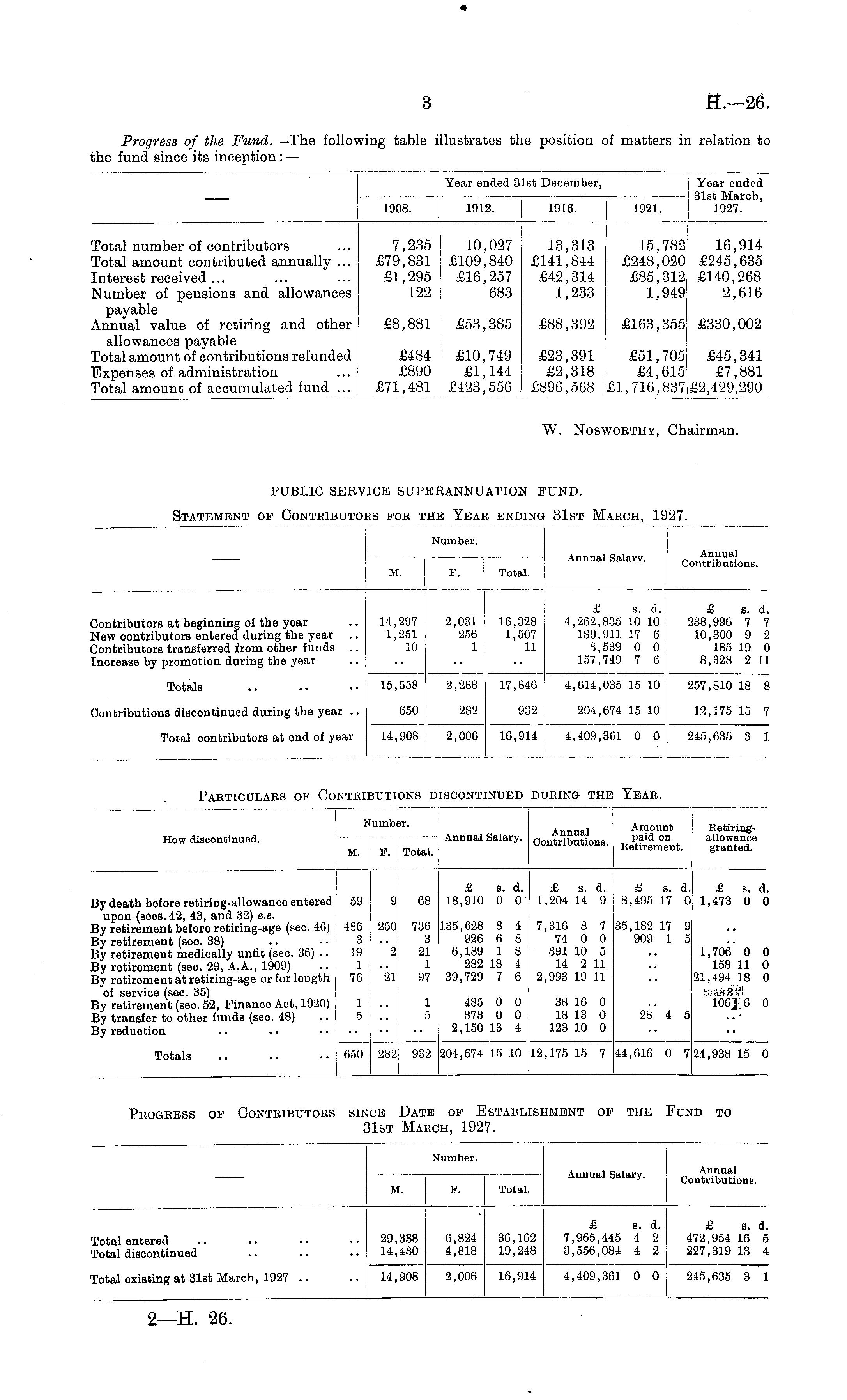 PUBLIC SERVICE SUPERANNUATION FUND. Statement of Contributors for the Year ending 31st March, 1927.