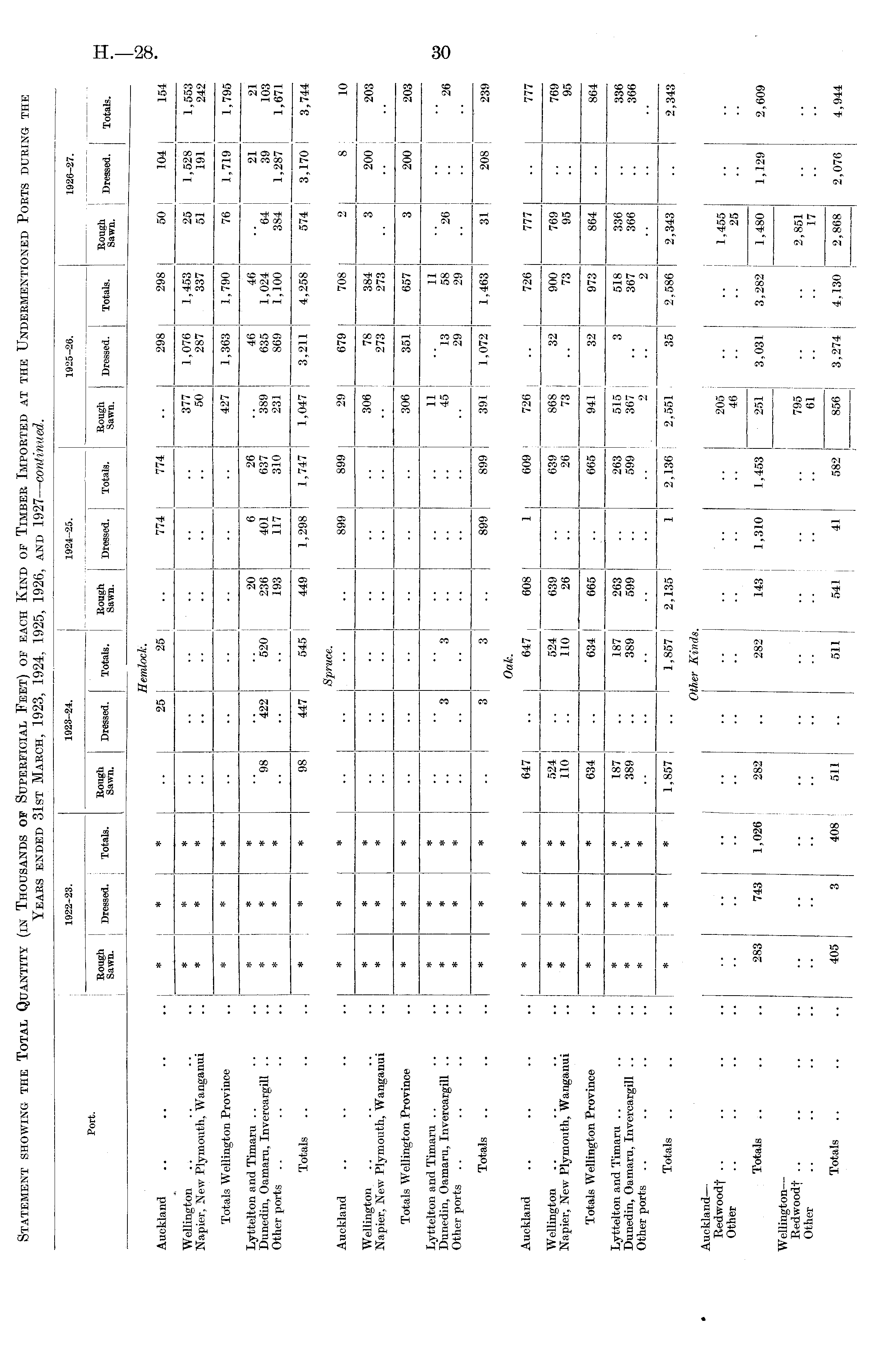 1922-23. 1923-24. j 1924-25. 1925-26. 1926-27. Port. Ill ?. | .-VV-. SaSI 11 | Dressed - { Totals. Dr&Ssed. Totals. fawii! Dlessed. Totals. "savra! Dressed. Totals. lawn i Dre3s<!d - Totals. j i j Hemlock. Auckland .. .. .. .. * * * .. 25 25 j 774 774 .. 298 298 50 j 104 154 Wellington .. .. .. * * * .. .. .. .. 377 1,076 1,453 25 I 1,528 ! 1,553 Napier, New Plymouth, Wanganui .. * * * .. .. i .. .. 50 287 337 51 J 191 242. Totals Wellington Province .. * * * .. .. | .. .. 427 1,363 1,790 76 j 1,719 1,795 Lyttelton and Timaru .. .. .. * * * .. .. • ■ i 20 6 26 .. 46 46 j 21 21 Dunedin, Oamaru, Invercargill .. .. * * * 98 422 520 ' 236 401 637 389 635 1,024 64 : 39 103 Other ports .. .. .. .. * * * .. .. .. j 193 117 310 231 869 1,100 384 j 1,287 1,671 Totals * 98 447 545 j 449 1,298 1,747 1,047 3,211 4,258 574 | 3,170 I 3,744 Spruce. Auckland .... .. * * * .. .. .. .. 899 899 29 679 708 2 81 10 Wellington .. .. .. .. * * * .. .. .. .. .. .. 306 78 384 3 200 203 Napier, New Plymouth, Wanganui .. * * * .. .. .. .. .. .. " 273 273 Totals Wellington Province .. * * * .. .. .. .. .. .. 306 351 657 3 200 j 203 Lyttelton and Timaru .. .. .. * * * .. .. .. .. .. .. 11 .. 11 .. j Dunedin, Oamaru, Invercargill .. * * * .. 3 3 .. .. 45 13 58 26 26 Other ports .. .. .. .. * * * .. .. .. .. .. .. .. 29 29 .. .. | . i Totals .. .. * * * .. 3 3 899 899 391 j 1,072 1,463 31 208 j 239 Oak. Auckland .. .. .. .. * * * 647 .. 647 , 608 1 609 ; 726 , 726 777 .. 777 Wellington .. .. .. .. * * * 524 .. 524 639 .. 639 868 j 32 900 769 .. 769 Napier, New Plymouth, Wanganui * * * 110 .. 110 26 .. 26 73 73 95 .. 95 Totals Wellington Province .. * j * * 634 .. 634 j 665 .. 665 941 j 32 973 864 .. 864 Lyttelton and Timaru .. .. .. * * * 187 .. 187 263 .. 263 515 i 3 518 336 .. 336 Dunedin, Oamaru, Invercargill .. .. * * * 389 , .. 389 599 .. 599 367 j .. 367 366 .. 366 Other ports .. .. .. .. * * * | .. .. .. .. 2!.. 2 Totals .. .. * * * 1,857| .. 1,857 [ 2,135 1 2,136 2,551 35 2,586 2,343 .. 2,343 Other Kinds. Auckland — I ill Redwoodf .. .. .. .. .. .. •• •• •• •• •• 205 •• •• 1,455 Other .. .. .. .. .. .. .. 1 .. .. .. • • I • • • • 46 .. .. 25 Totals .. .. .. 283 743 1,026 282 .. 282 143 1,310 1,453 251 3,031 3,282 1,480 1,129 2,609 Wellington — Redwoodf .. .. .. .. .. .. .. .. .. .. .. .. .. 795 .. .. 2,851 Other .. .. .. .. .. .. .... .. .. .. .. .. 61 .. .. 17 Totals .. .. .. 405 3 408 511 .. 511 541 41 582 856 3,274 4,130 2,868 2,076 4,944