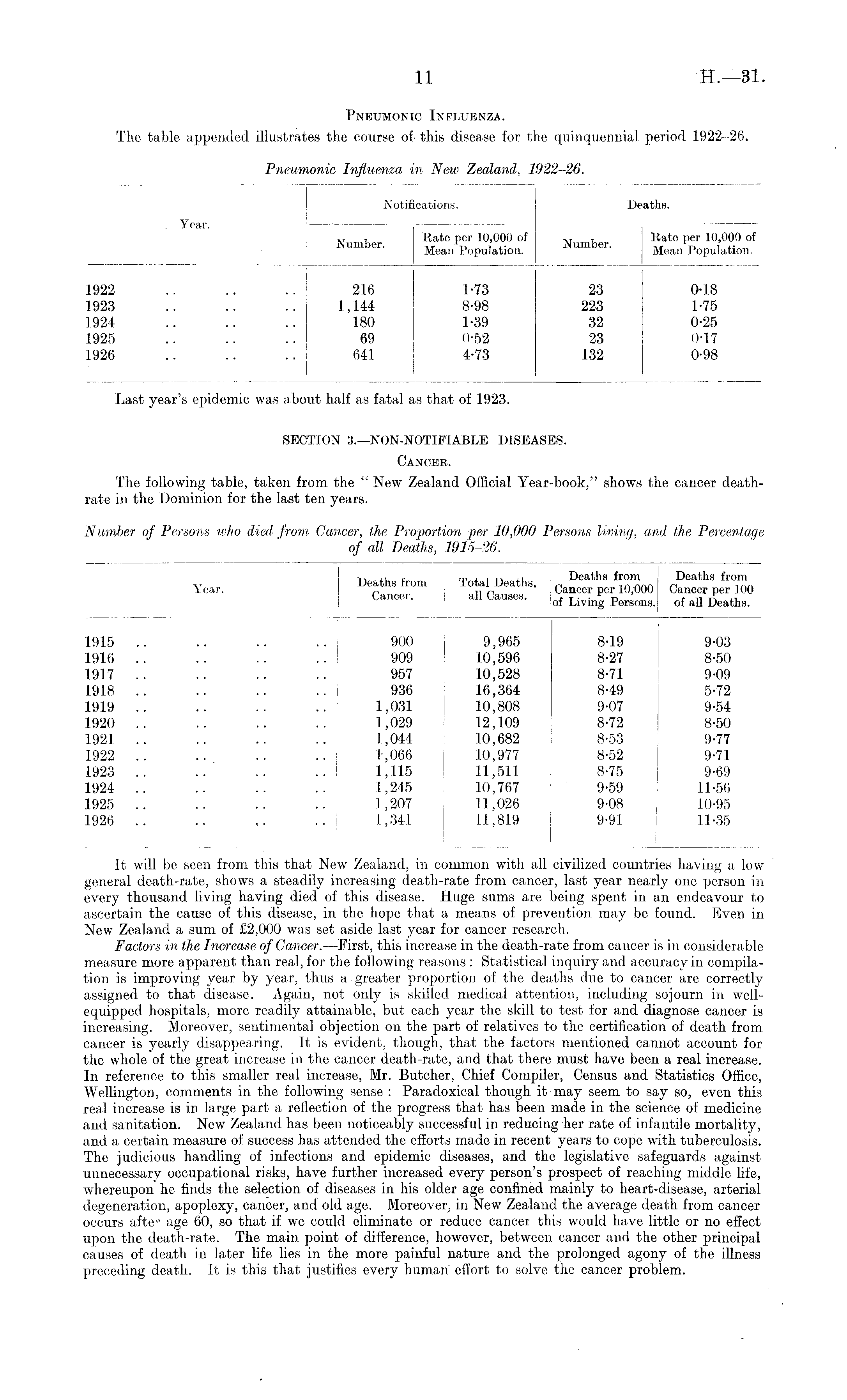 Pneumonic Influenza in New Zealand, 1922-26.