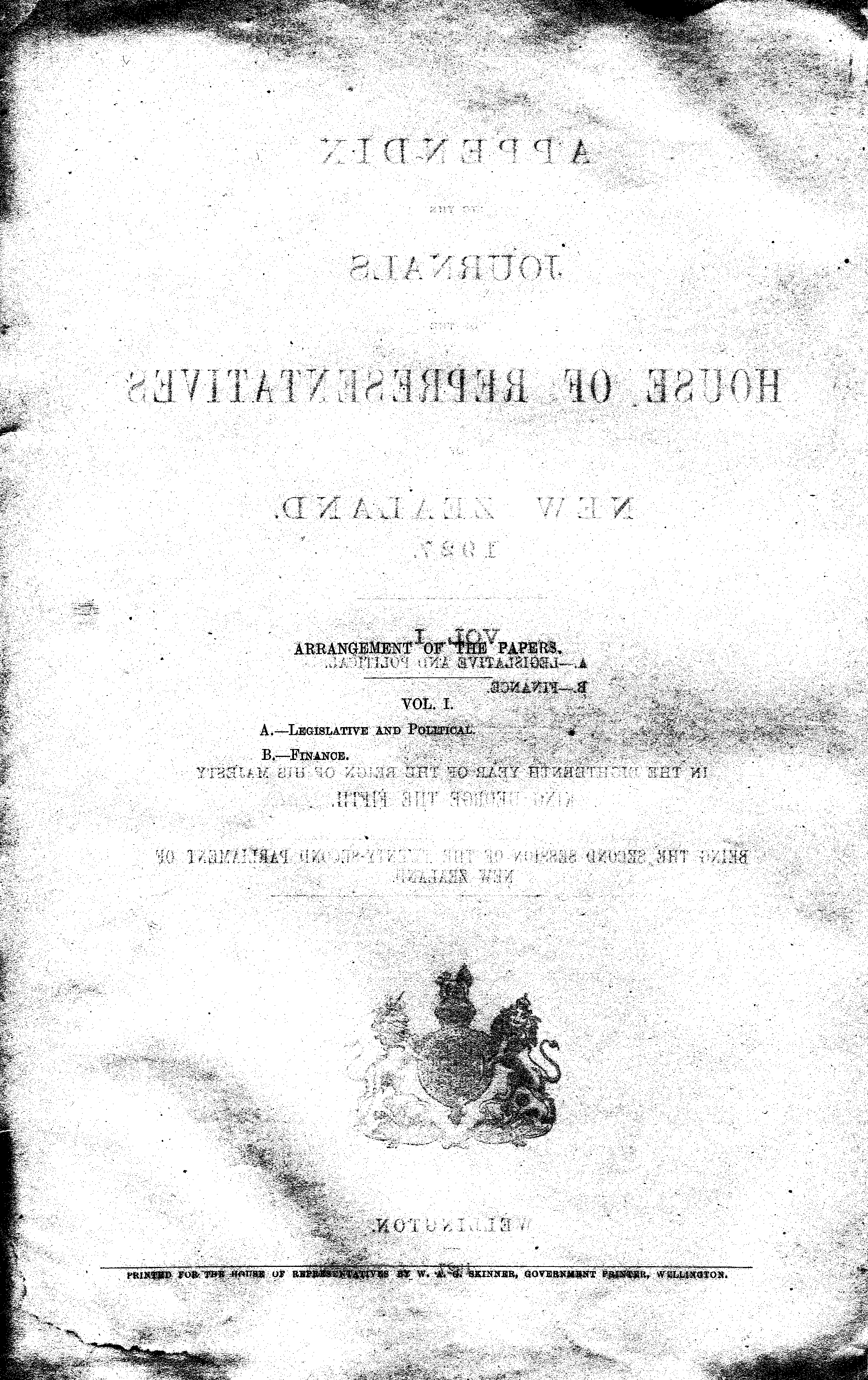 PRINTED FOR TUB HOUSE OF REPRESENTATIVES BY W. A. Q. SKINNER, GOVERNMENT PRINTER, WELLINGTON.