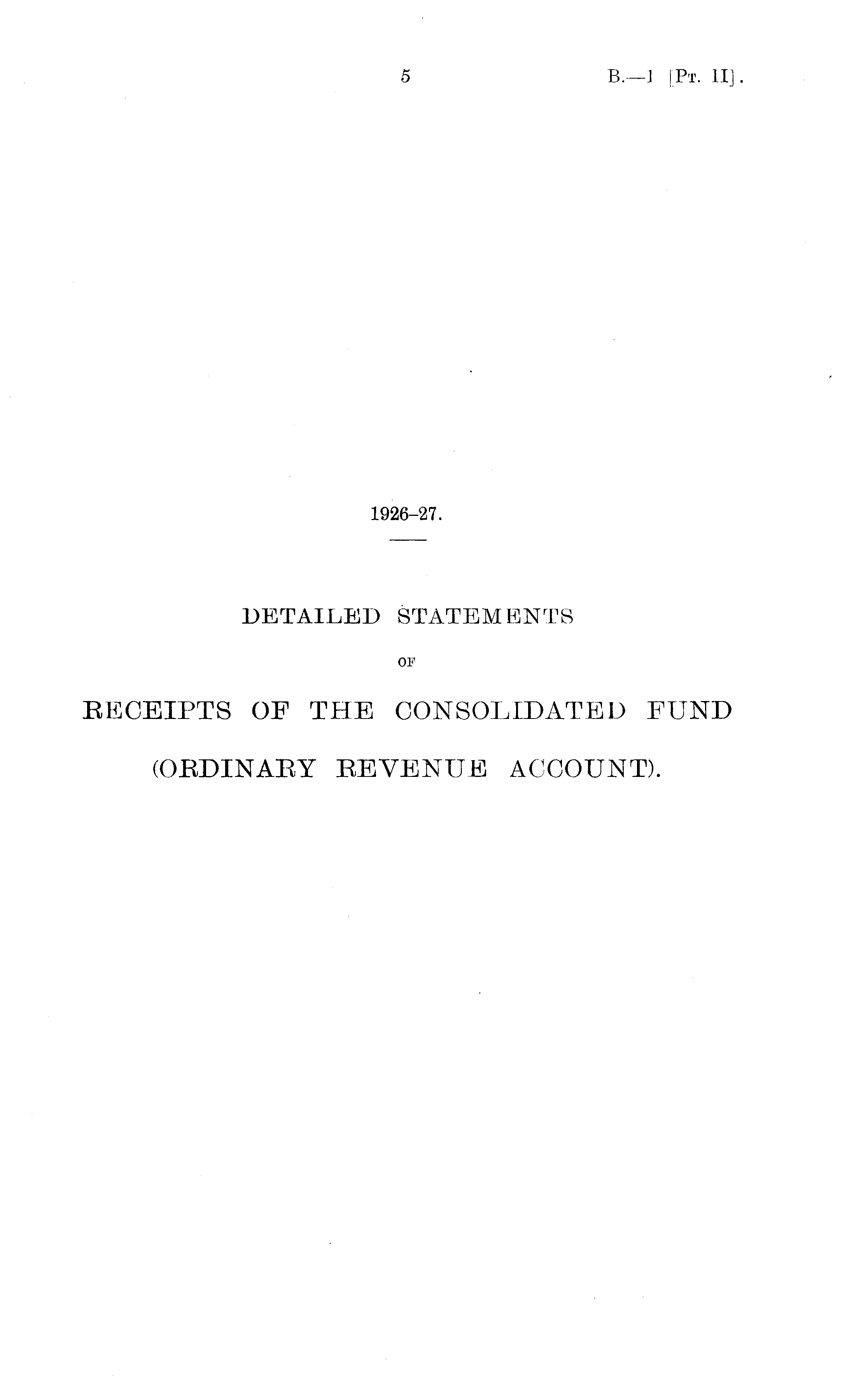 1926-27. DETAILED STATEMENTS OF RECEIPTS OF THE CONSOLIDATED FUND (ORDINARY REVENUE ACCOUNT).