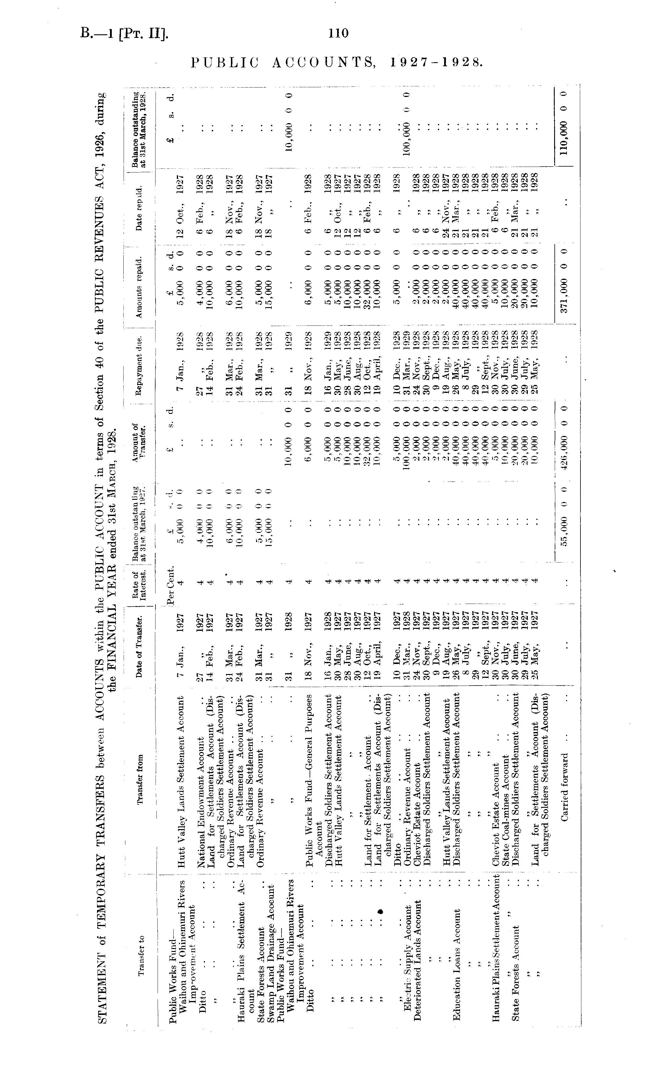 STATEMENT of TEMPORARY TRANSFERS between ACCOUNTS within the PUBLIC ACCOUNT in terms of Section 40 of the PUBLIC REVENUES ACT, 1926, during the FINANCIAL YEAR ended 31st March, 1928.