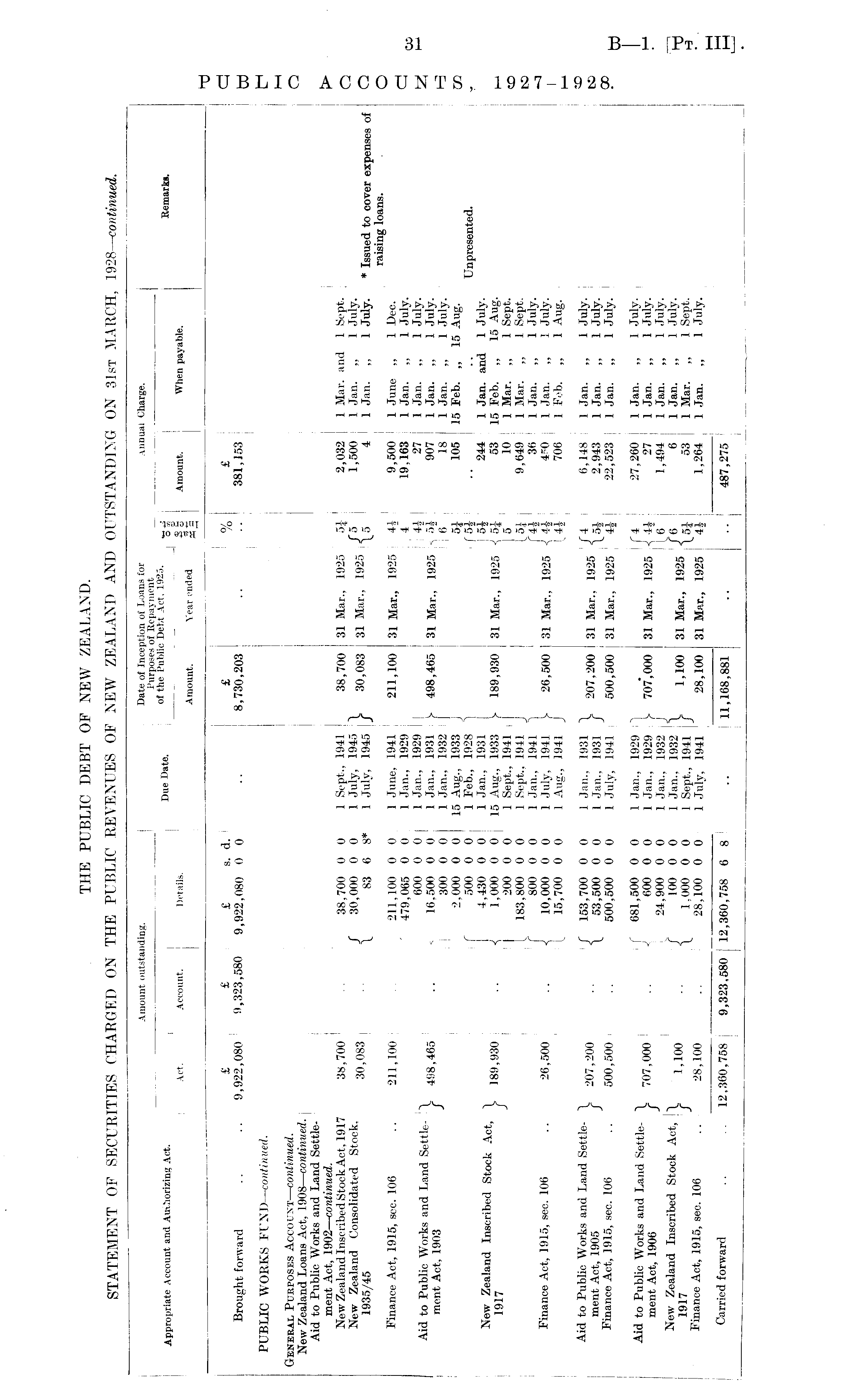 THE PUBLIC DEBT OF NEW ZEALAND. STATEMENT OF SECURITIES CHARGED ON THE PUBLIC REVENUES OF NEW ZEALAND AND OUTSTANDING ON 31st MARCH, 1928—continued.