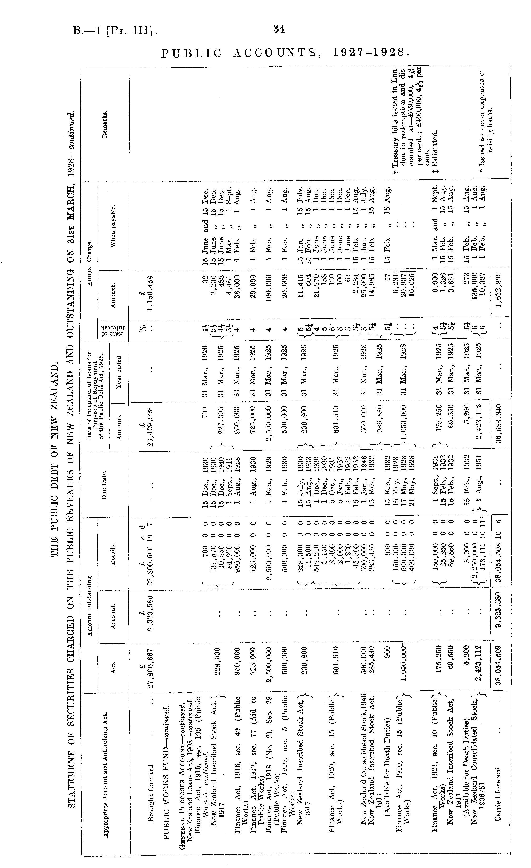 THE PUBLIC DEBT OF NEW ZEALAND. STATEMENT OF SECURITIES CHARGED ON THE PUBLIC REVENUES OF NEW ZEALAND AND OUTSTANDING ON 31st MARCH, 1928—continued.