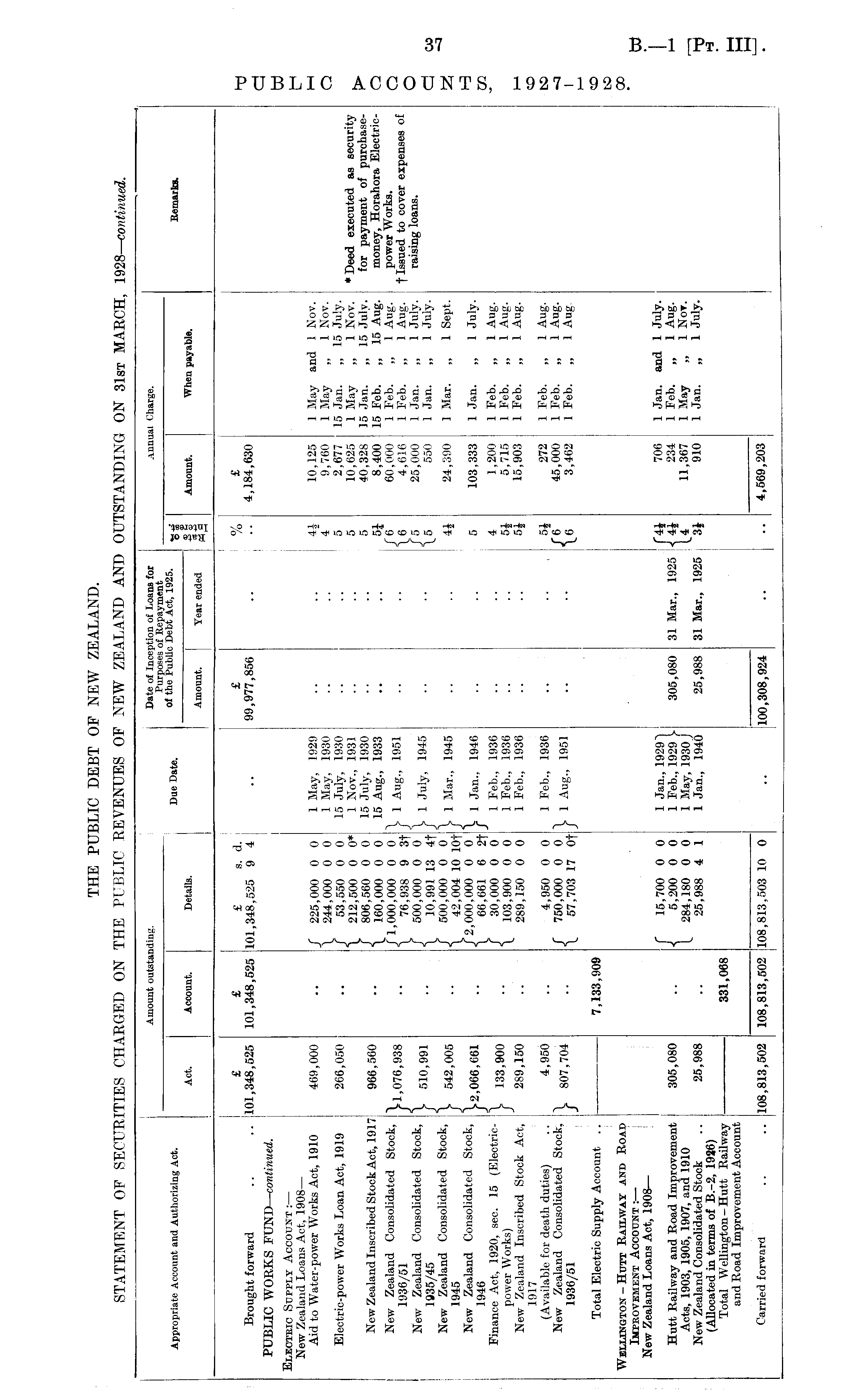 THE PUBLIC DEBT OF NEW ZEALAND. STATEMENT OF SECURITIES CHARGED ON THE PUBLIC REVENUES OF NEW ZEALAND AND OUTSTANDING ON 31st MARCH, 1928—continued.