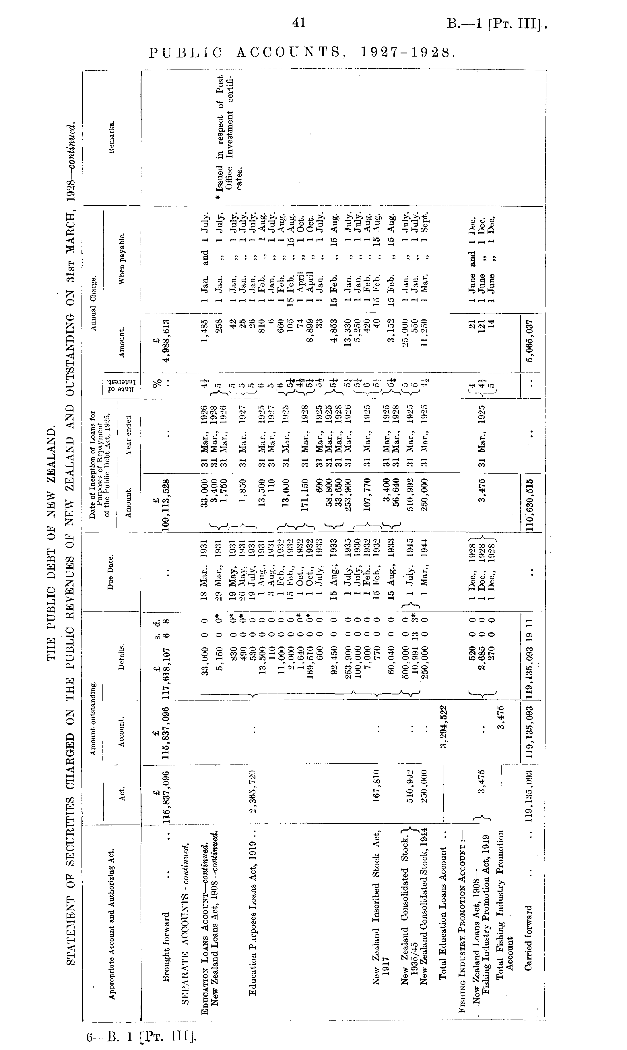 THE PUBLIC DEBT OF NEW ZEALAND. STATEMENT OF SECURITIES CHARGED ON THE PUBLIC REVENUES OF NEW ZEALAND AND OUTSTANDING ON 31st MARCH, 1928—continued.