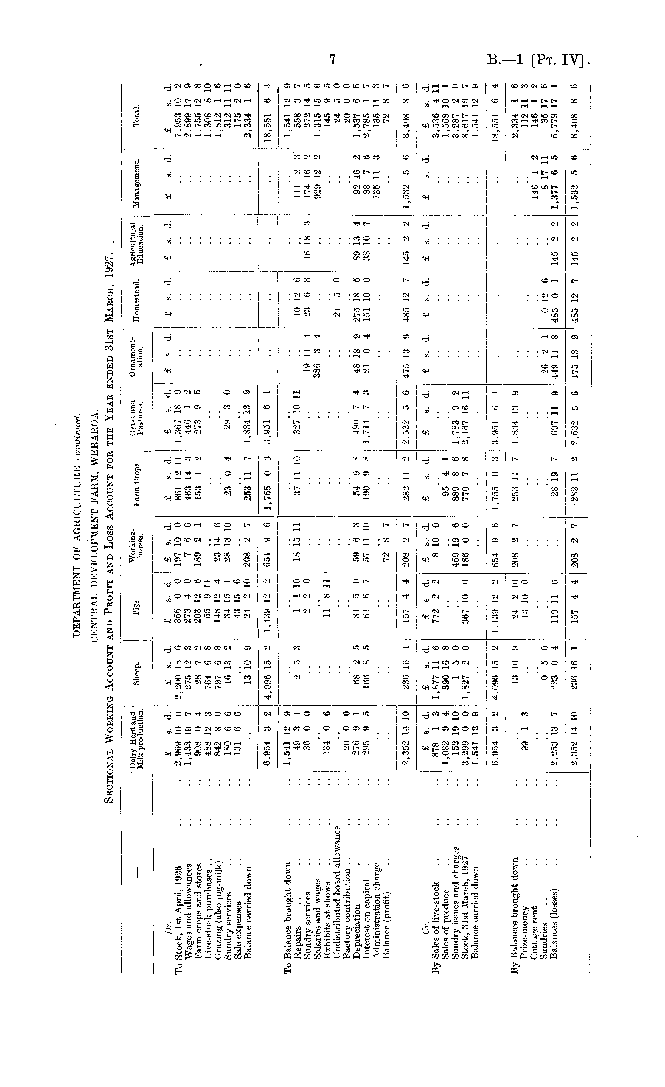 DEPARTMENT OF AGRICULTURE -continued. CENTRAL DEVELOPMENT FARM, WERAROA. Sectional Working Account and Profit and Loss Account for the Year ended 31st March, 1927.