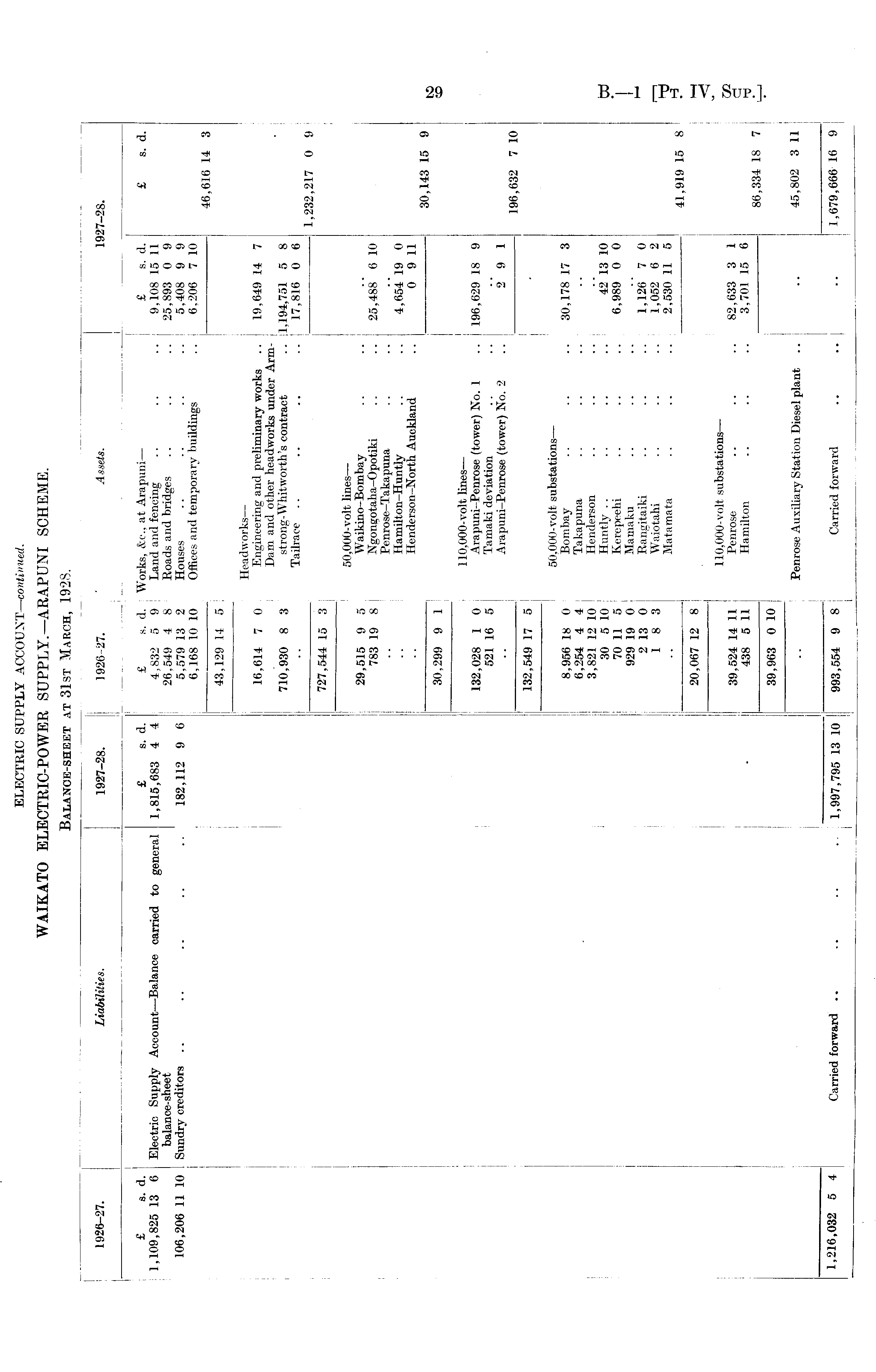 ELECTRIC SUPPLY ACCOUNT— continued. WAIKATO ELECTRIC-POWER SUPPLY.— ARAPUNI SCHEME. Balance-sheet at 31st March, 1928.