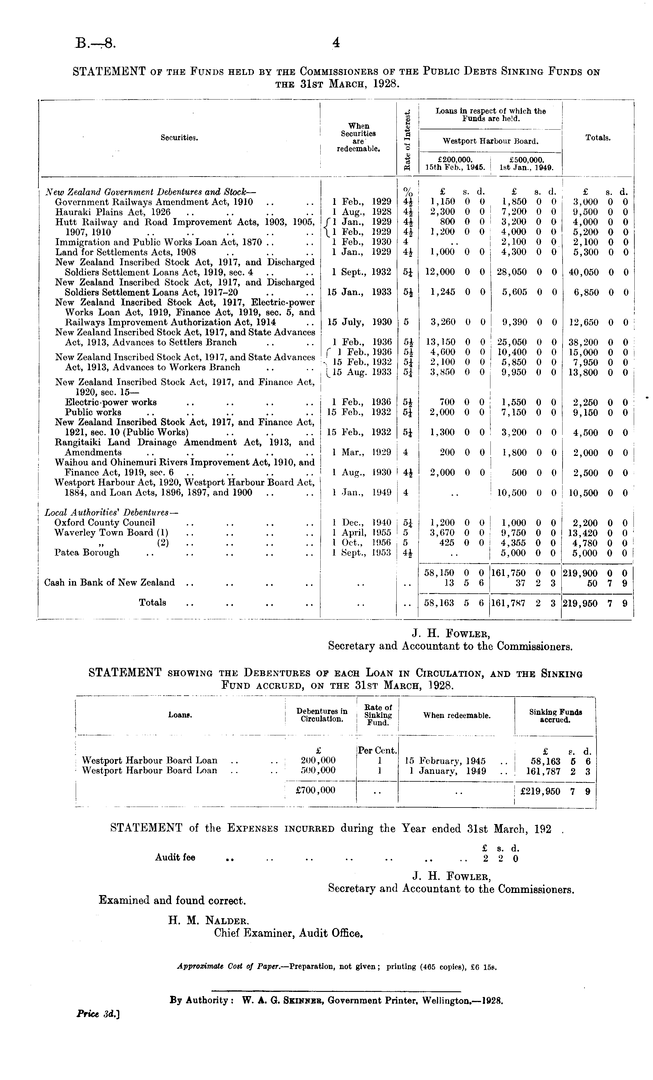 Loan,. 11 » When redeemable. S^S° da £ Per Cent. j £ e. d. Westport Harbour Board Loan .. .. 200,000 1 15 February, 1945 .. 88,163 5 6 Westport Harbour Board Loan .. .. j 500,000 1 1 January, 1949 .. j 161,787 2 3 £700,000 .. .. £219,950 7 9
