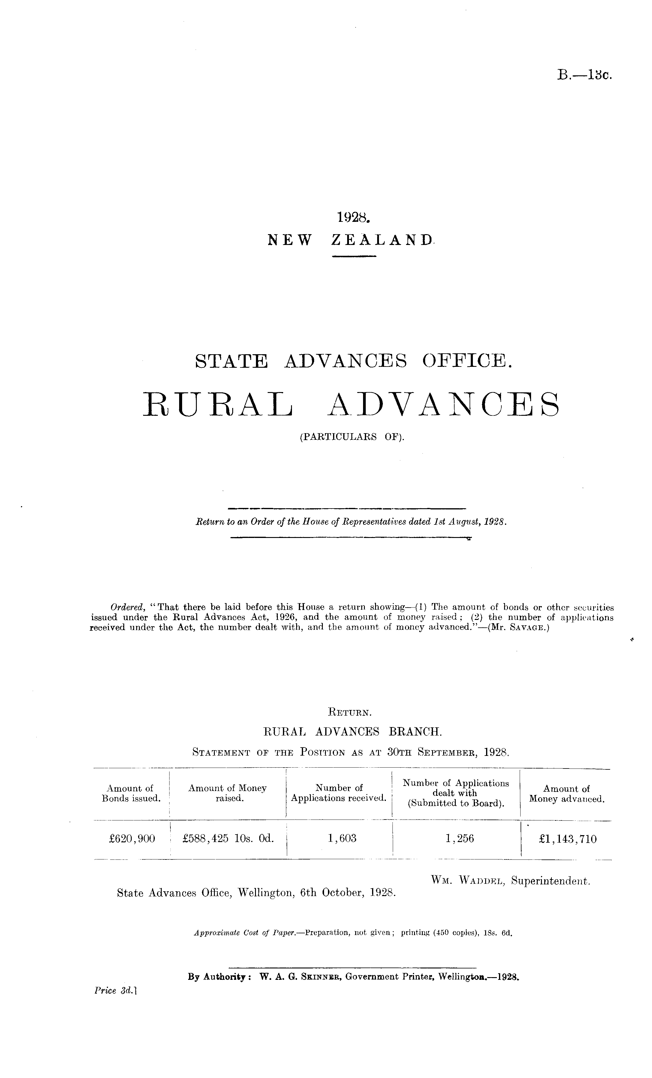 Wm. Waddel, Superintendent. State Advances Office, Wellington, 6th October, 1928.