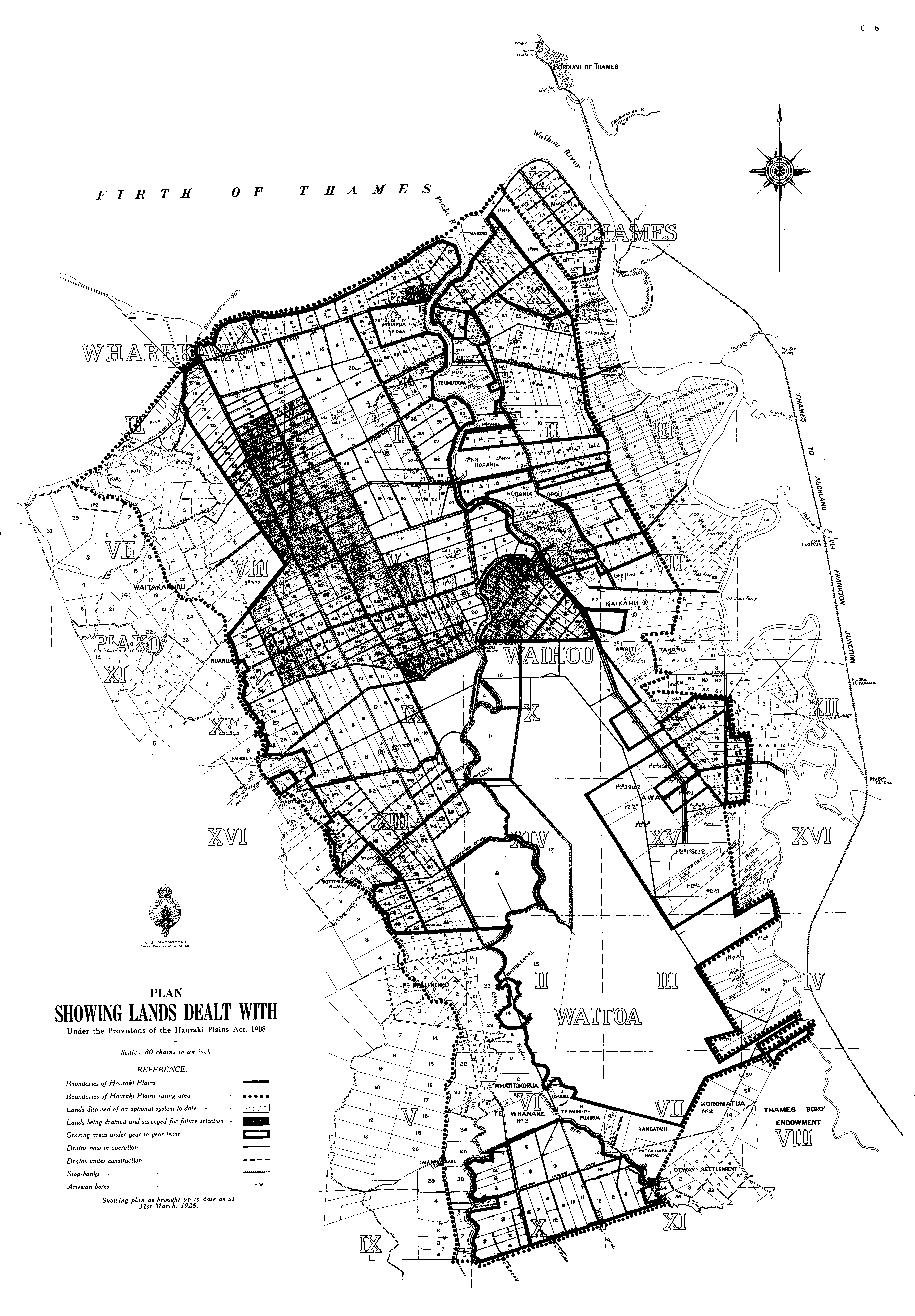 PLAN SHOWING LANDS DEALT WITH Under the Provisions of the Hauraki Plains Act. 1908.