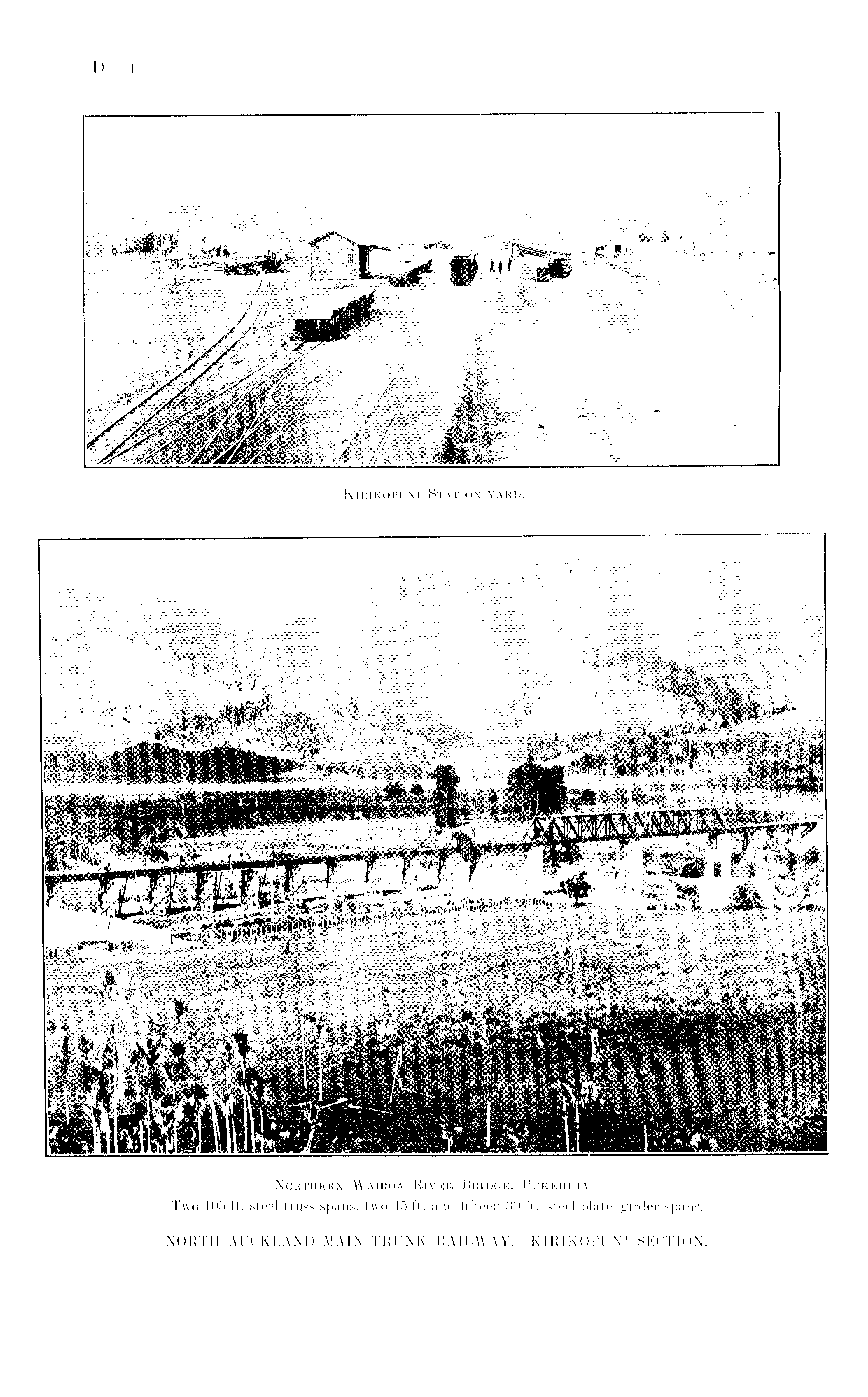 Northern Wairoa River Bridge, Pukehuia. Two 105ft. steel truss spans, two 45ft. and fifteen 30ft. steel plate girder spans. NORTH AUCKLAND MAIN TRUNK RAILWAY.—KIRIKOPUNI SECTION.