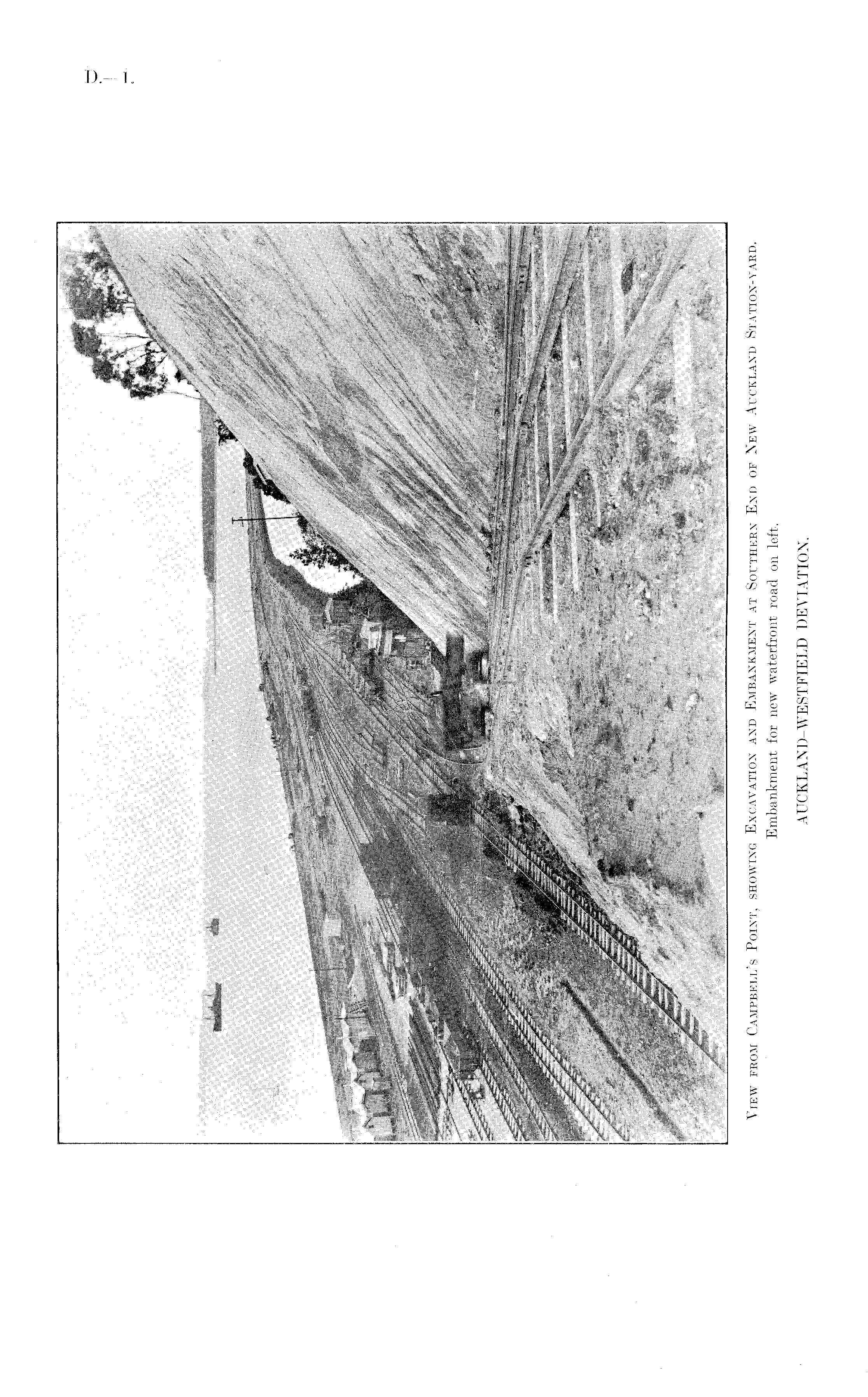 View from Campbell's Point, showing Excavation and Embankment at Southern End of New Auckland Station-yard. Embankment for new waterfront road on left. AUCKLAND-WESTFIELD DEVIATION.
