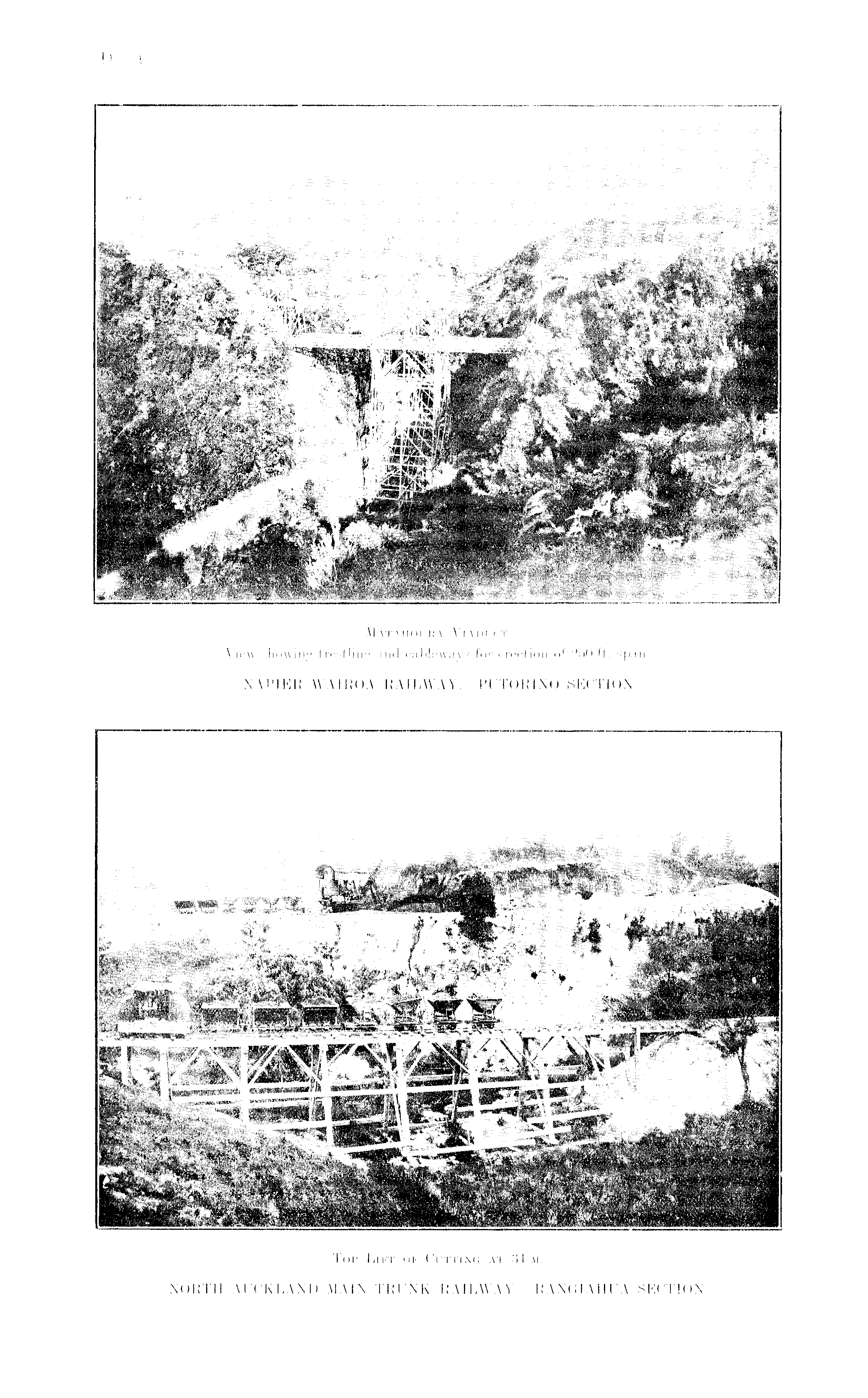 Matahoura Viaduct. View showing trestling and cable ways for erection of 250ft. span. NAPIER-WAIROA RAILWAY.—PUTORINO SECTION.