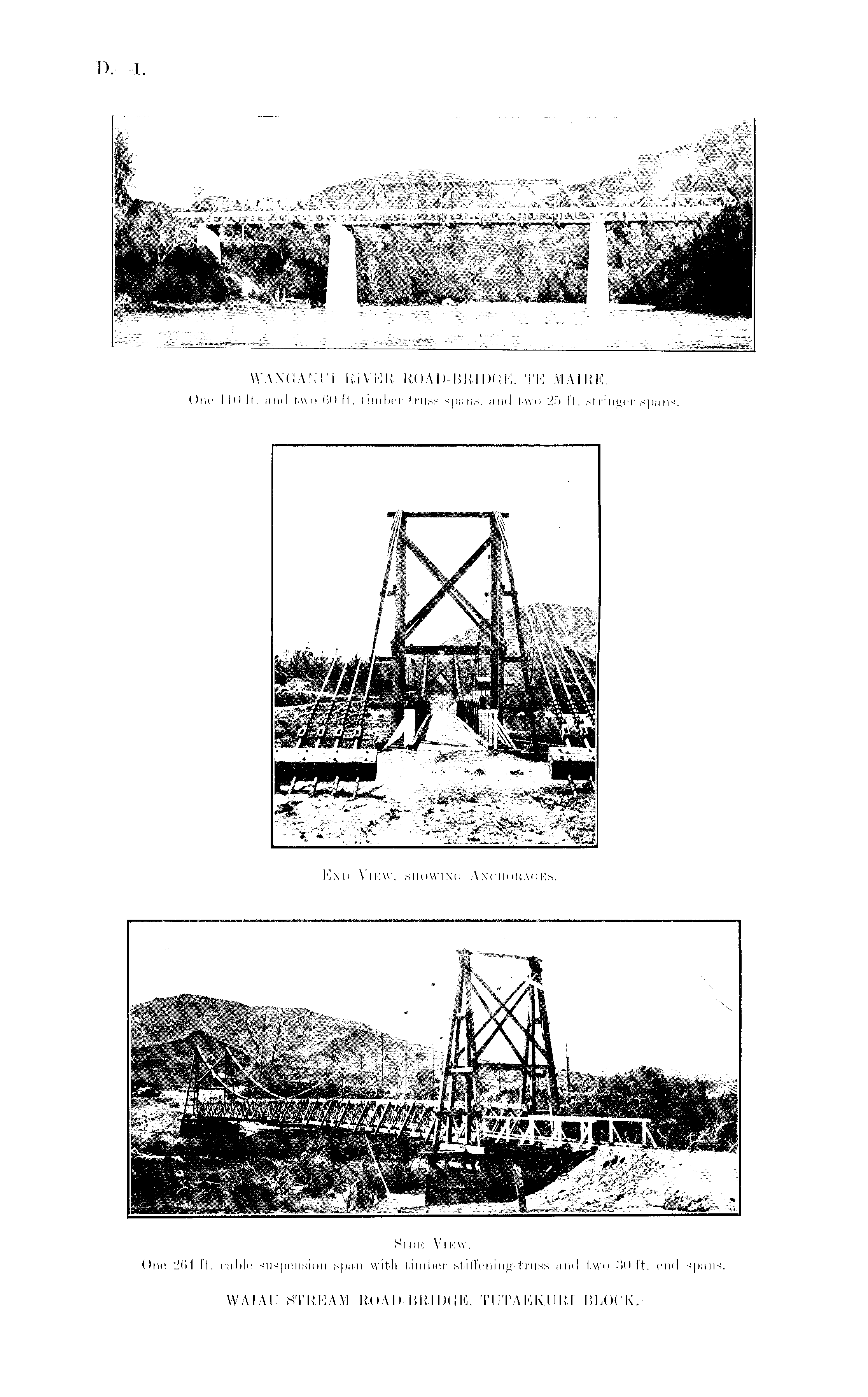 WANGANUI RIVER ROAD-BRIDGE, TE MAIRE. One 110ft. and two 60ft. timber truss spans, and two 25ft. stringer spans.