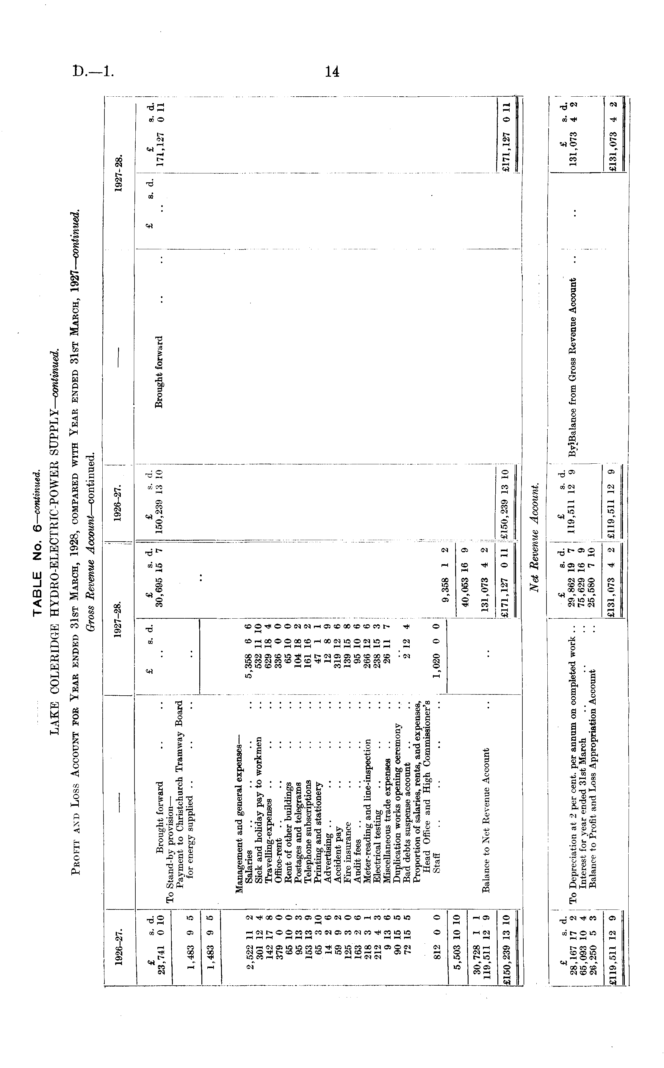 TABLE No. 6 — continued. LAKE COLERIDGE HYDRO-ELECTRIC-POWER SUPPLY— continued. Profit and Loss Account for Year ended 31st March, 1928, compared with Year ended 31st March, 1927 — continued. Gross Revenue Account — continued.