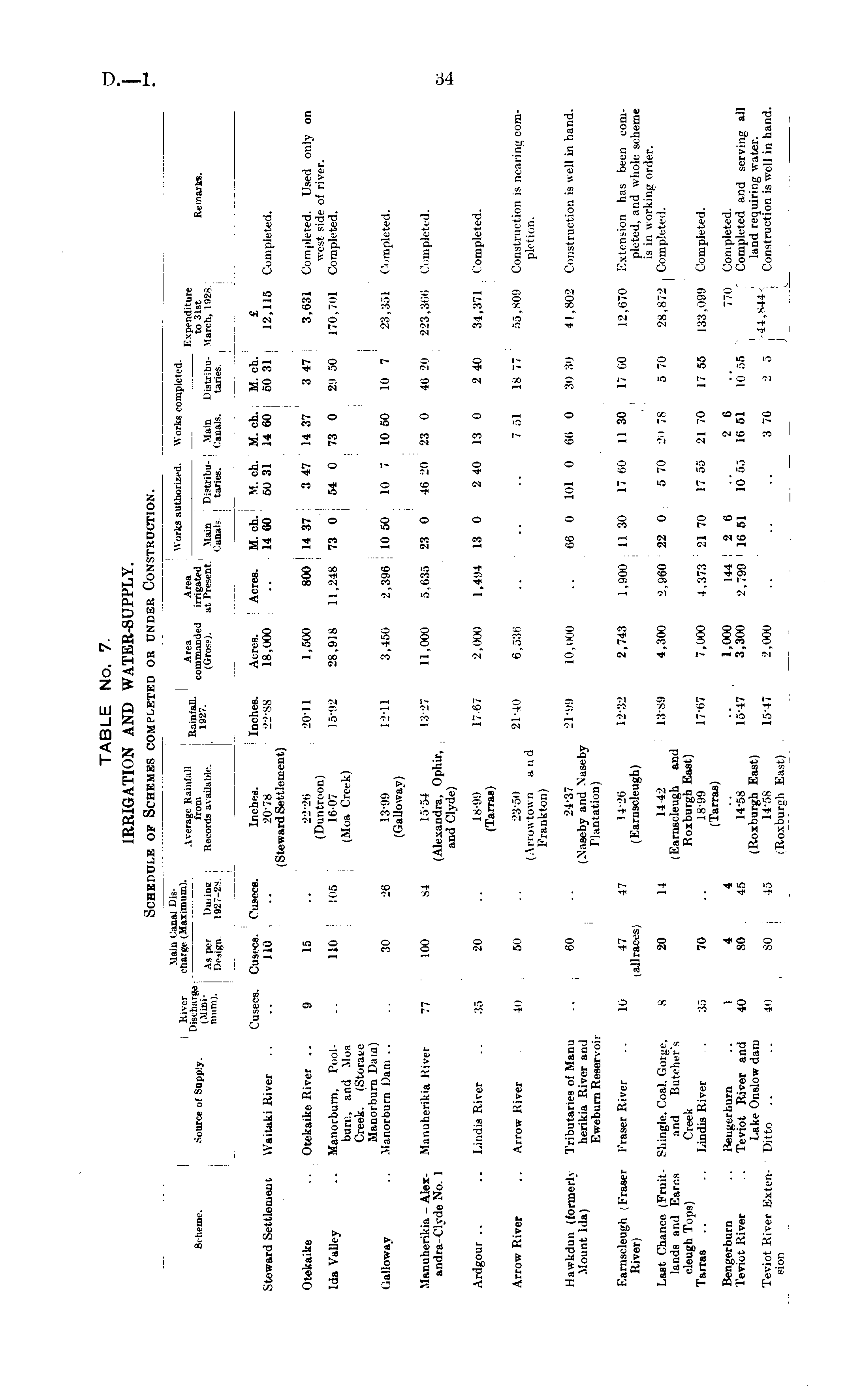 TABLE No. 7. IRRIGATION AND WATER-SUPPLY. Schedule of Schemes completed or under Construction.