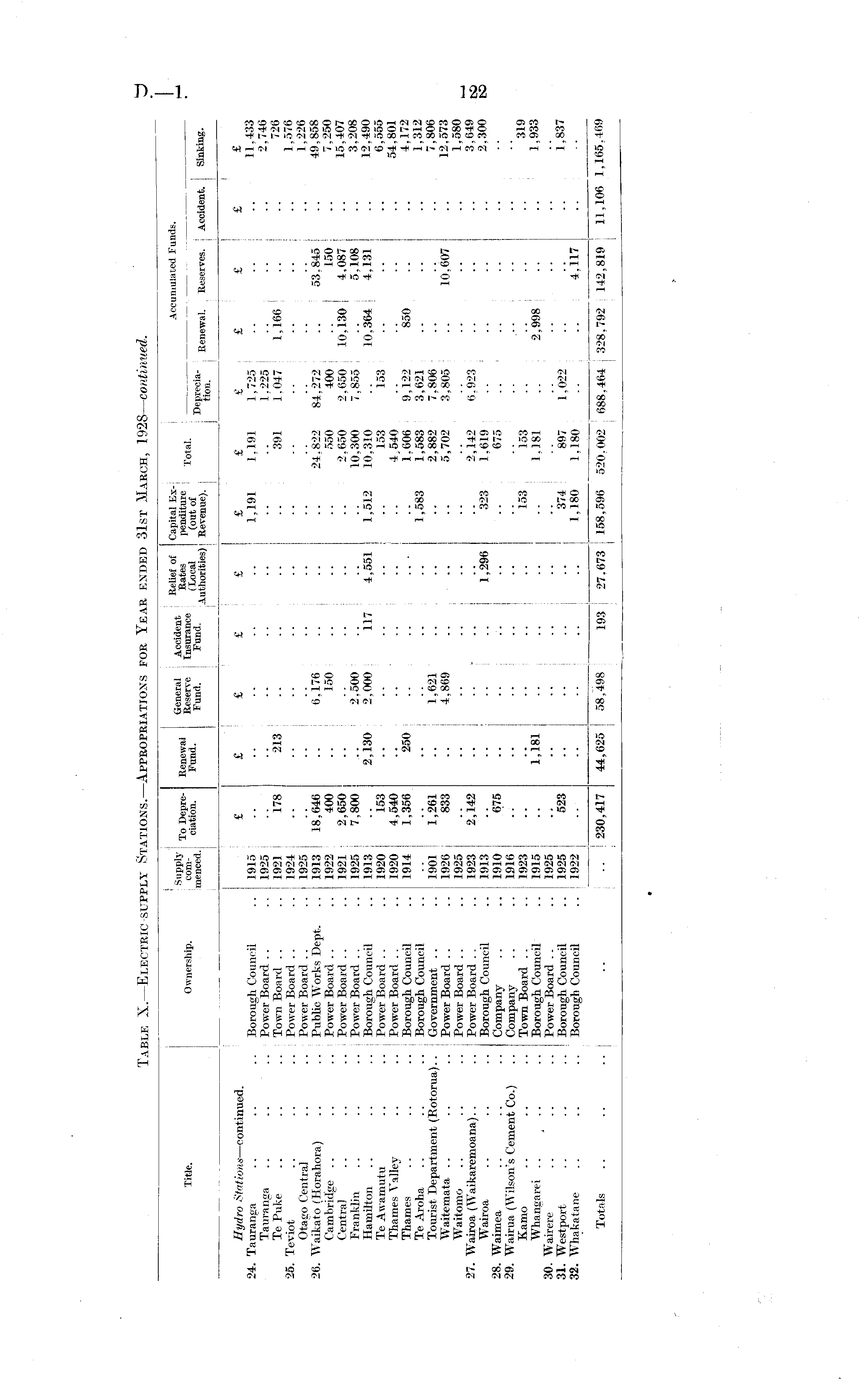 Table X.—Electric supply Stations.— Appropriations for Year ended 31st March, 1928— continued.