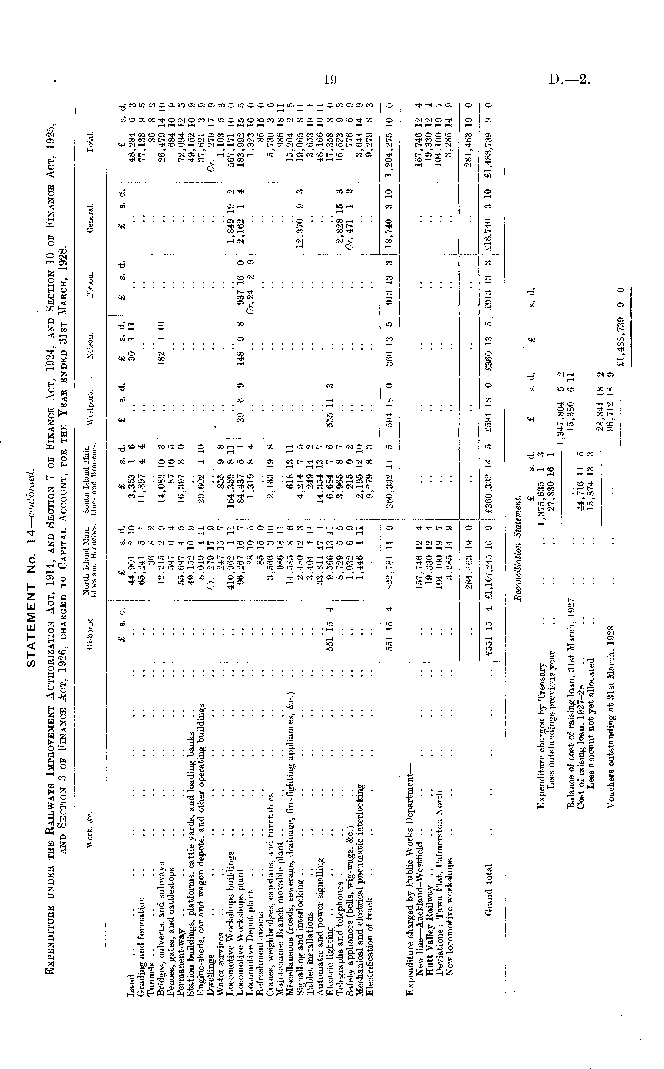 STATEMENT No. 14— continued. Expenditure under the Railways Improvement Authorization Act, 1914, and Section 7 of Finance Act, 1924, and Section 10 of Finance Act, 1925, and Section 3 of Finance Act, 1926, charged to Capital Account, for the Year ended 31st March, 1928.