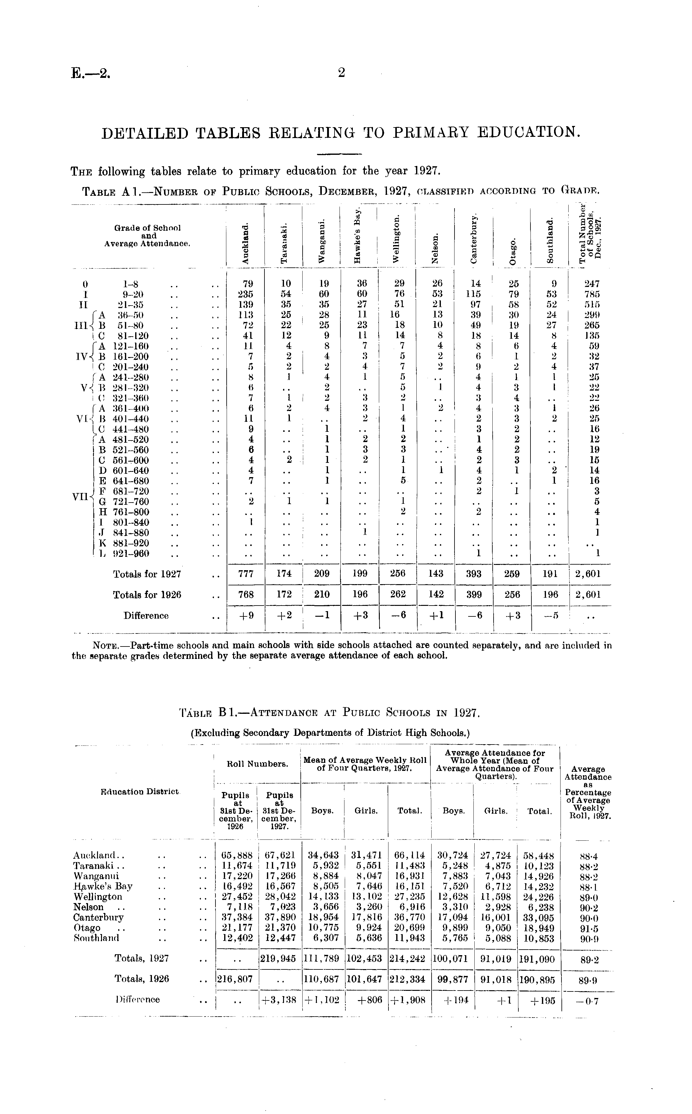 The following tables relate to primary education for the year 1927. Table A1. —Number of Public Schools, December, 1927, classified according to Grade.